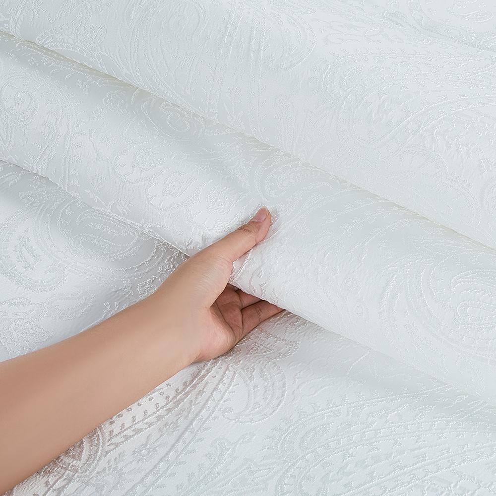 تم تصميم هذا المفرش من قماش الجاكار الفاخر بنقشة منسوجة بتصميم كلاسيكي هندسي، يجمع بين تفاصيل الروكوكو الفاخرة وتماثل زخرفي مستوحى من القصور الإيطالية تضفي طابعًا كلاسيكيًا دافئًا على غرفة نومك مع التطريز البارز اللذي يعطيك شعور الفخامة الملكية.