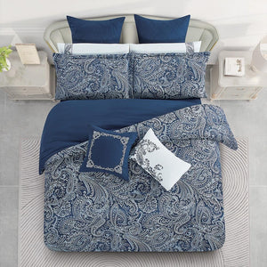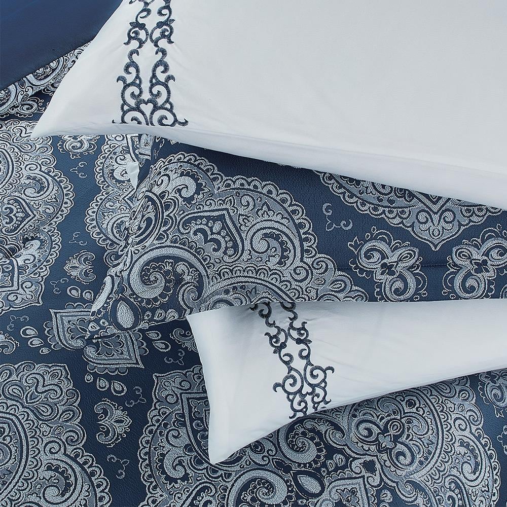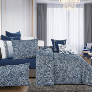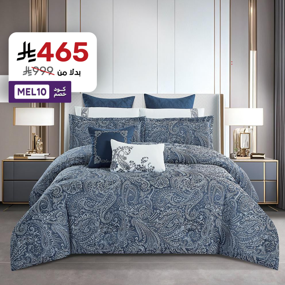مفرش صيفي فاخر مزدوج جاكار مطرز 12 قطعة – لوتشيني Lucini– كحلي