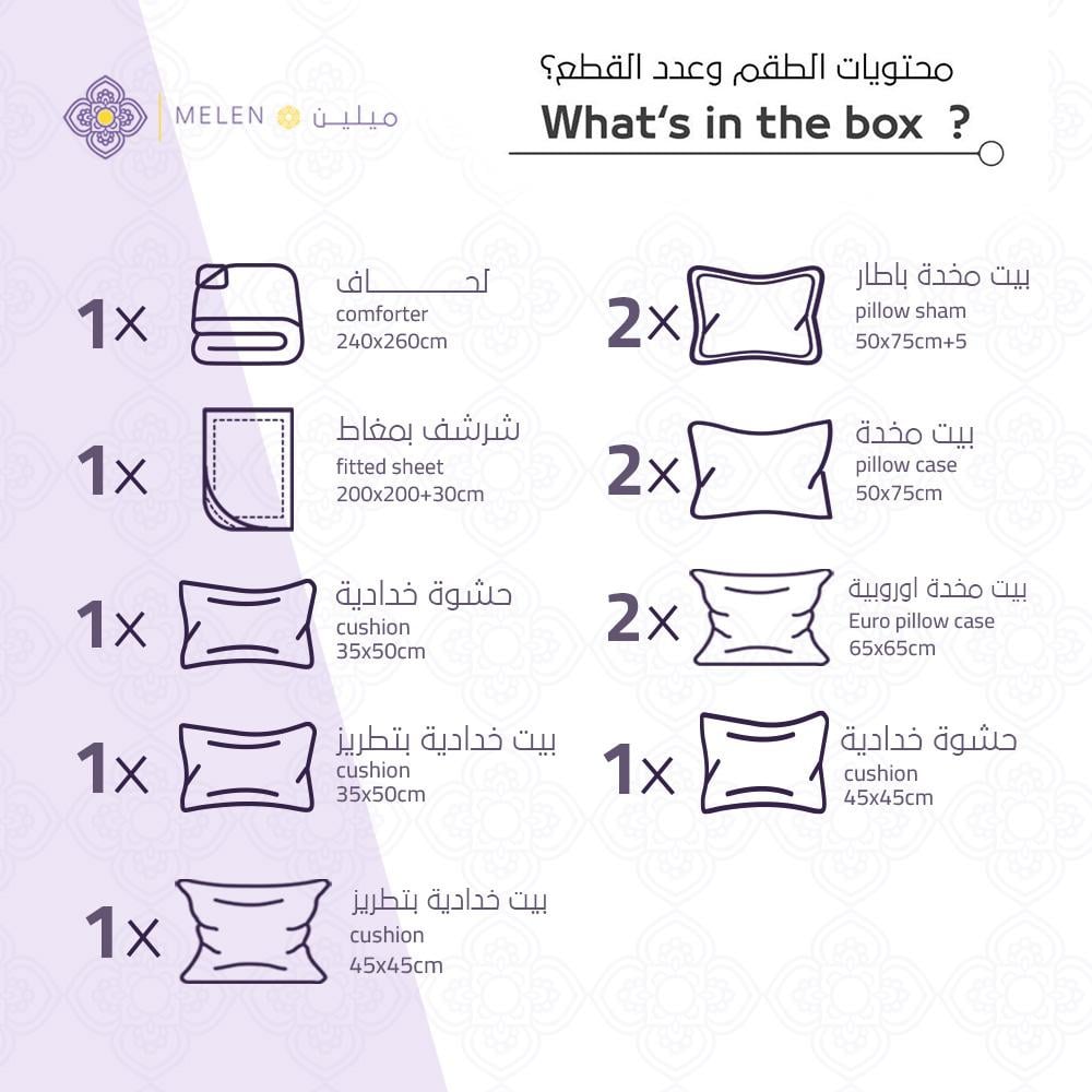 1-لحاف: الطول 240 سم العرض 260 سم.