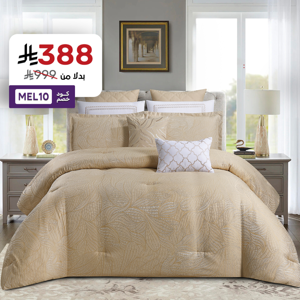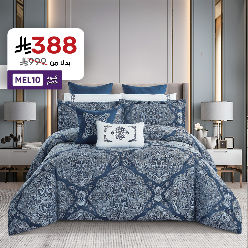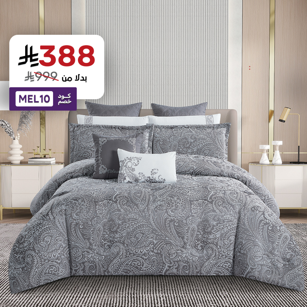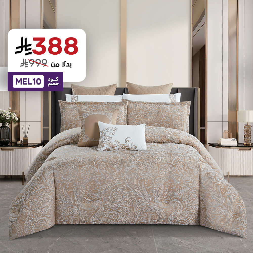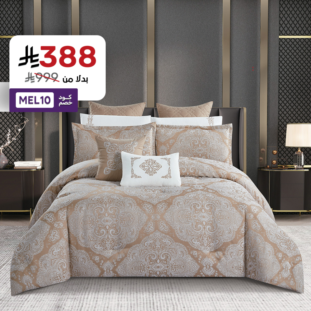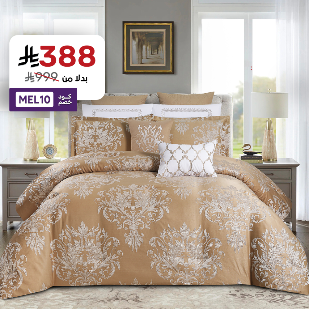 انه ليس مجرد طقم مفرش، بل هو تجسيد للثراء البصري والتوازن بين الفخامة والراحة