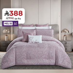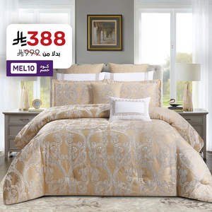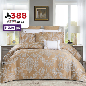 صُمم وجه المفرش من جاكار فاخر بنقشات فاخرة ، و اللتي تبرز بأناقة لامعة لتجسد قطعة فنية تزين غرفة نومك .