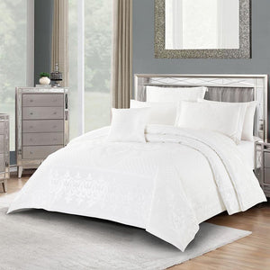 مفرش صيفي مزدوج جاكار شانيل 7 قطع - لورال - أبيض
