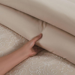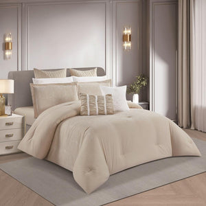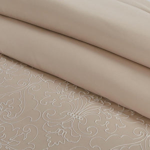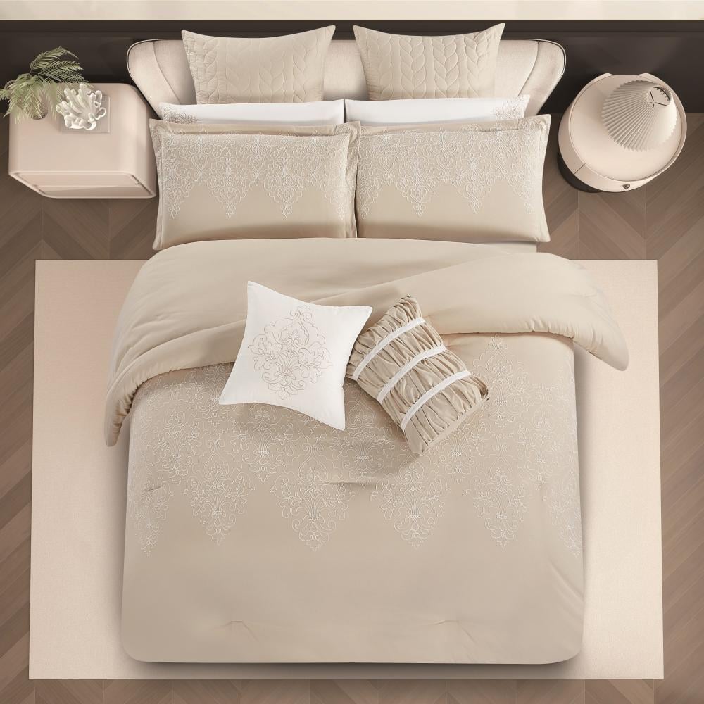 مفرش صيفي مزدوج مطرز فاخر 12 قطعة - اليجانزا - بيج