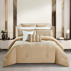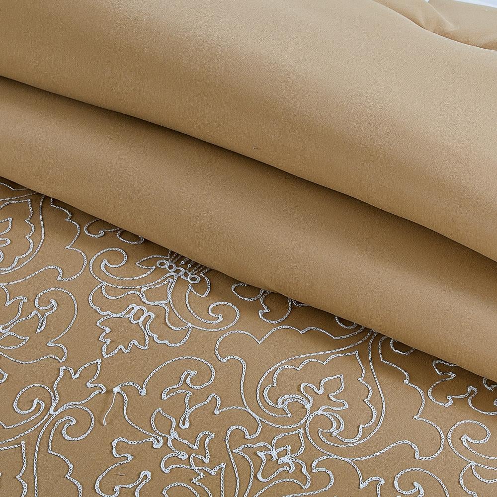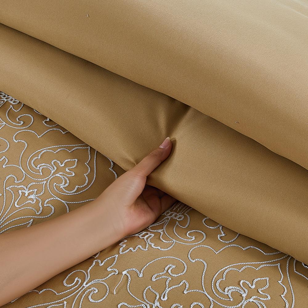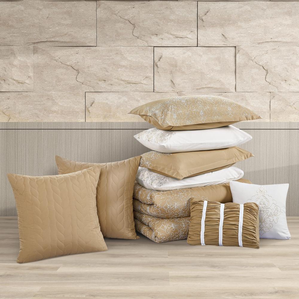 مفرش صيفي مزدوج مطرز فاخر 12 قطعة - اليجانزا-بيج غامق