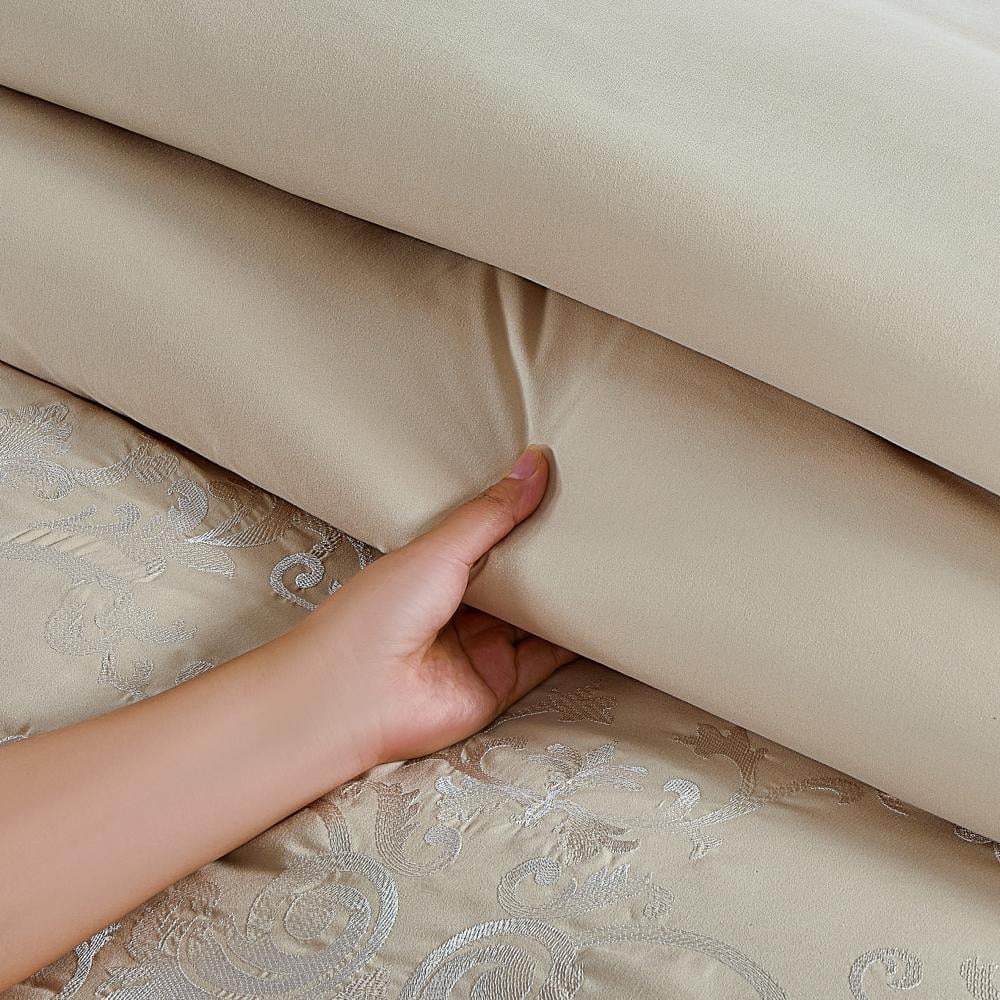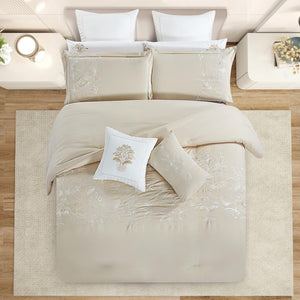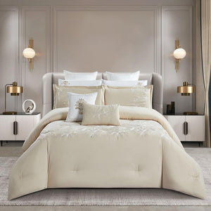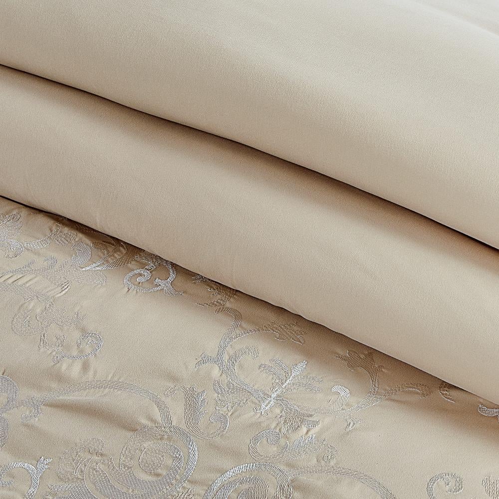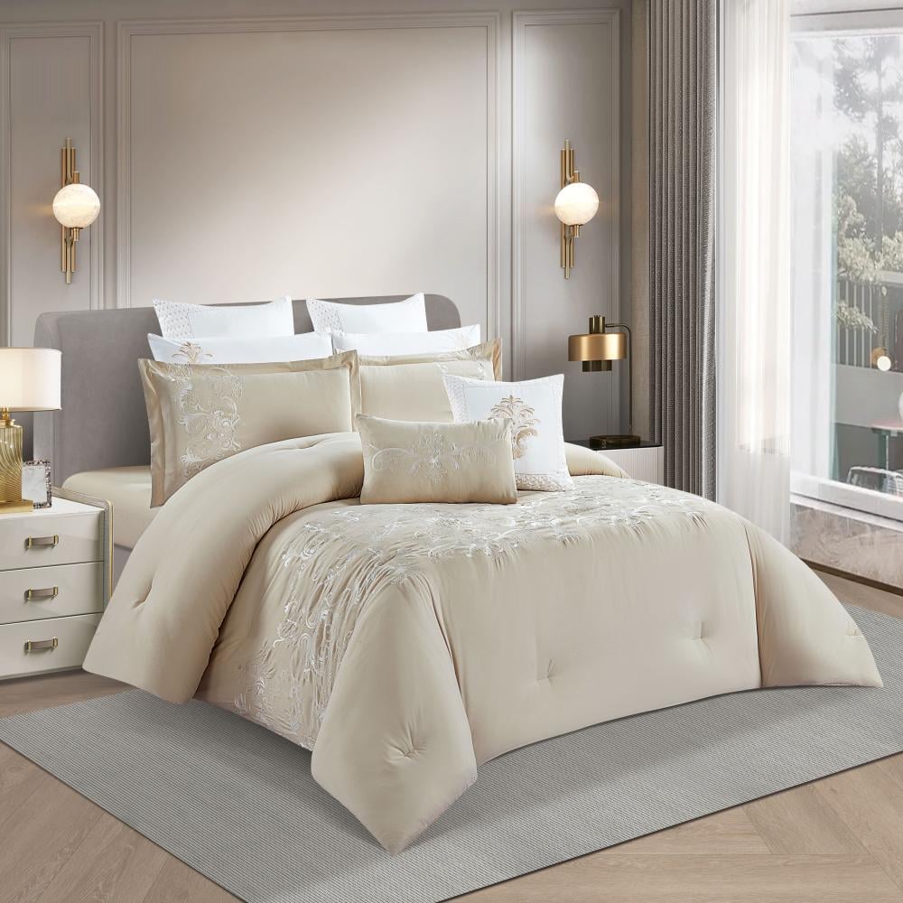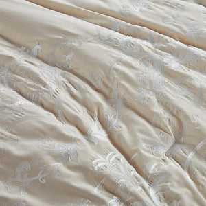 مفرش صيفي مزدوج مطرز فاخر 12 قطعة - اليسيا - بيج