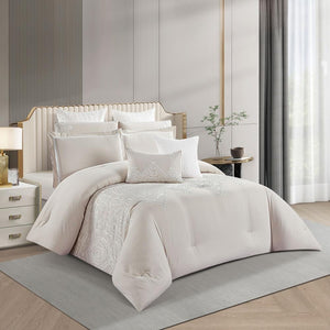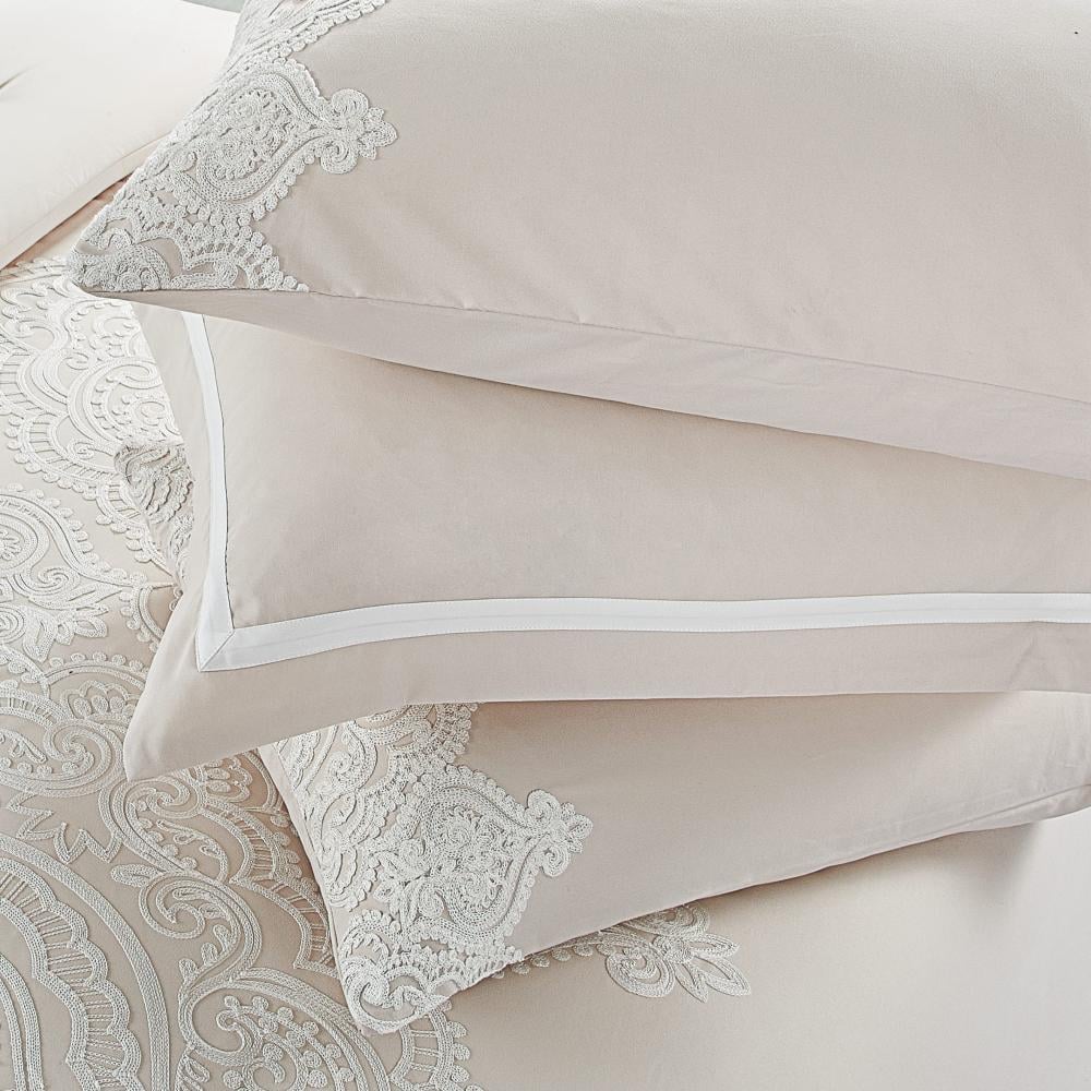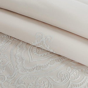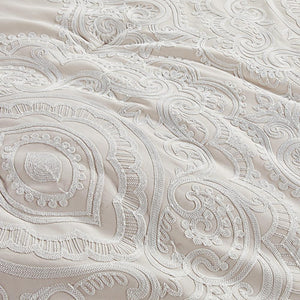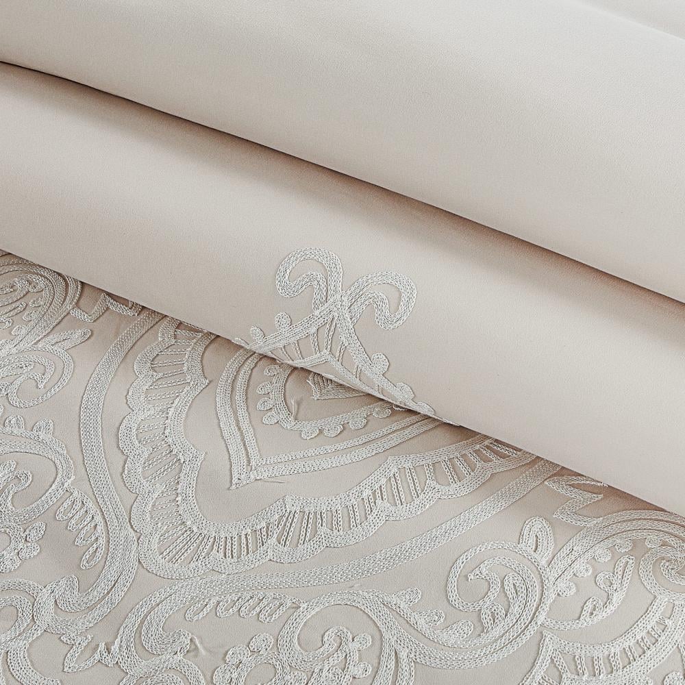 مفرش صيفي مزدوج مطرز فاخر 12 قطعة - فيوري - بيج فاتح