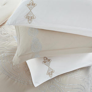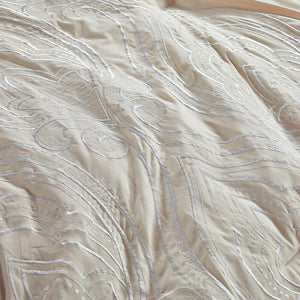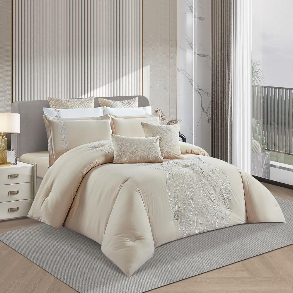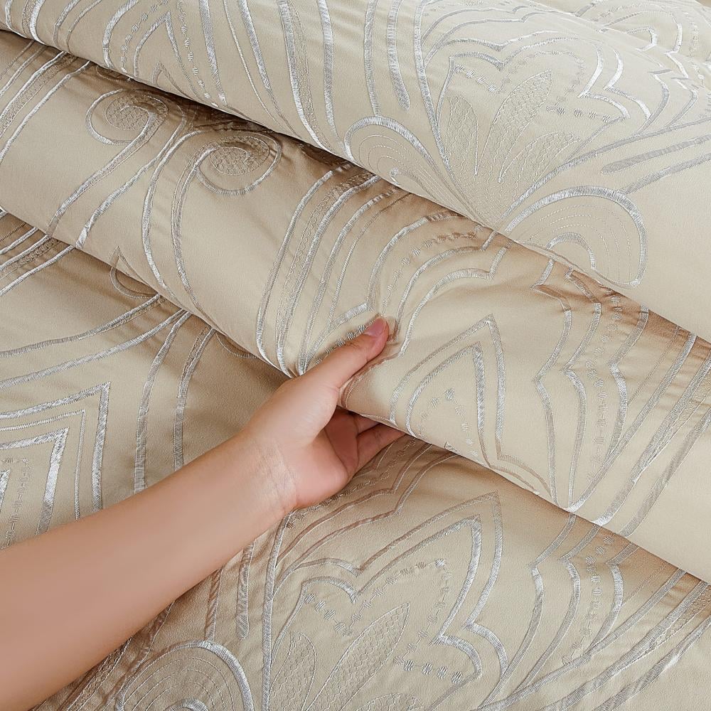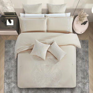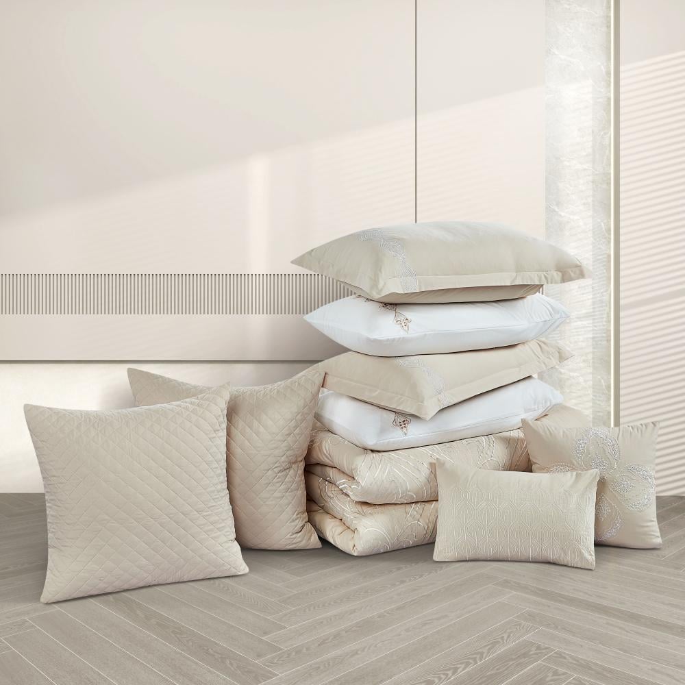 مفرش صيفي مزدوج مطرز فاخر 12 قطعة - كابري- بيج