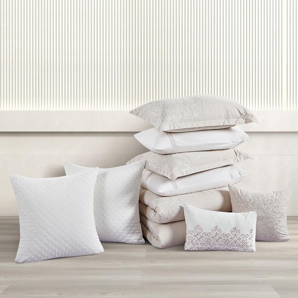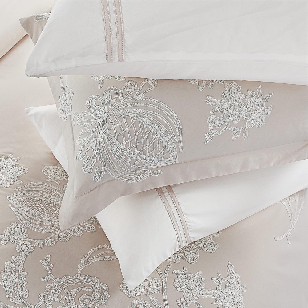 مفرش صيفي مزدوج مطرز فاخر 12 قطعة - ليوني - بيج فاتح