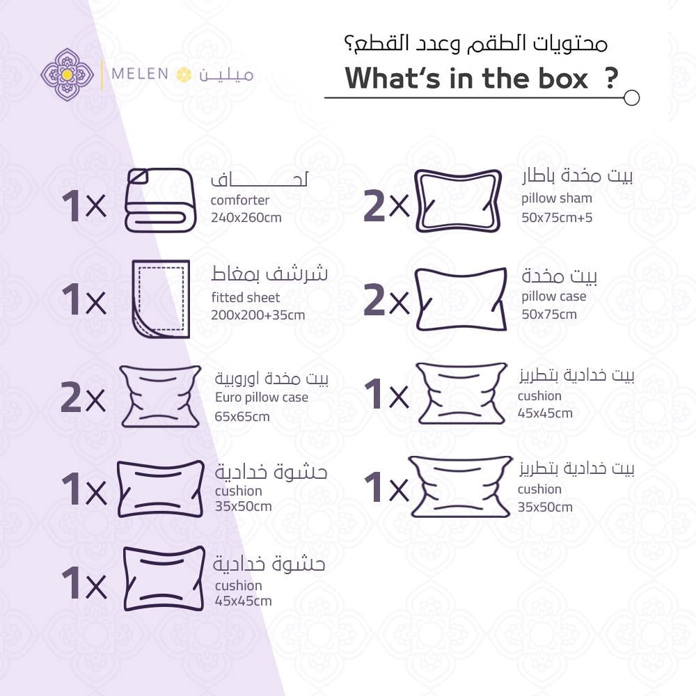 يأتيك هذا المفرش مصنوعًا من مايكروفايبر فائق النعومة بملمس ناعم يضم تطريزات كلاسيكية راقية تضفي لمسة من الأصالة والأناقة الخالدة.