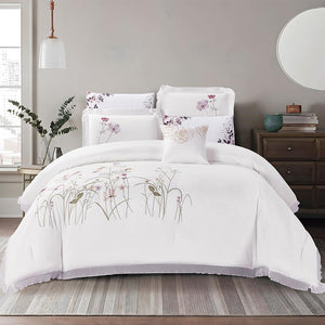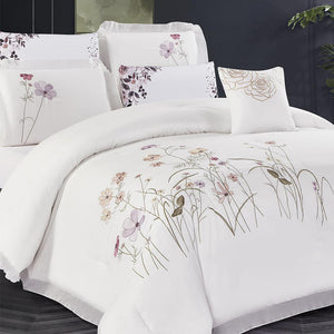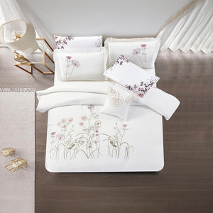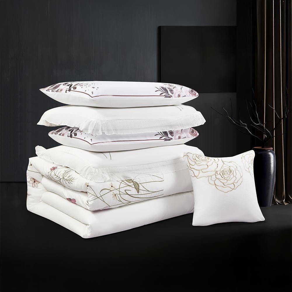 مفرش صيفي مزدوج مطرز فاخر 7 قطع - ازاليا - ابيض