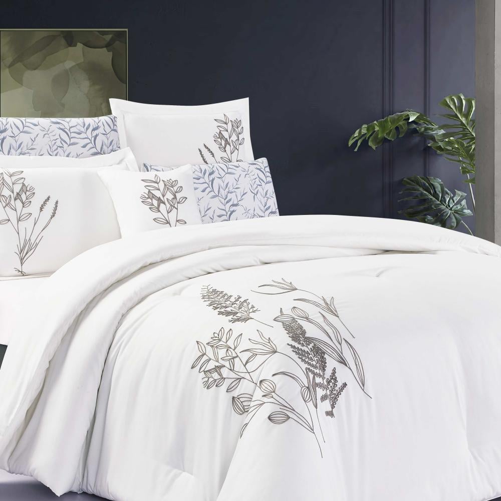 اختاري مفرش "يودوكيا" ليمنح سريرك لمسة ملكية بتطريزه الراقي وخامته الصيفية الخفيفة. تصميم يجمع بين الراحة والجمال، ويضفي على غرفتك طابعًا من الفخامة الهادئة.