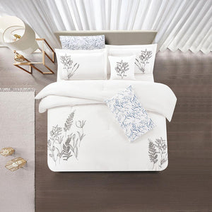 مفرش صيفي مزدوج مطرز فاخر 7 قطع - يودوكيا - ابيض