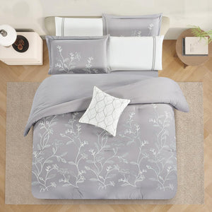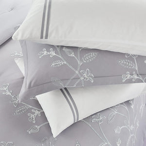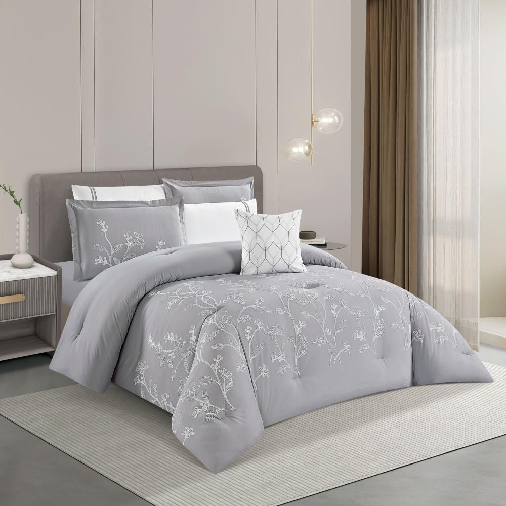 مفرش صيفي مزدوج مطرز فاخر 8 قطع - ايزابيلا - رمادي