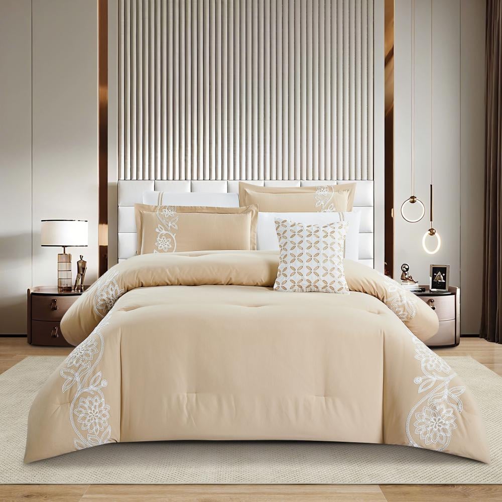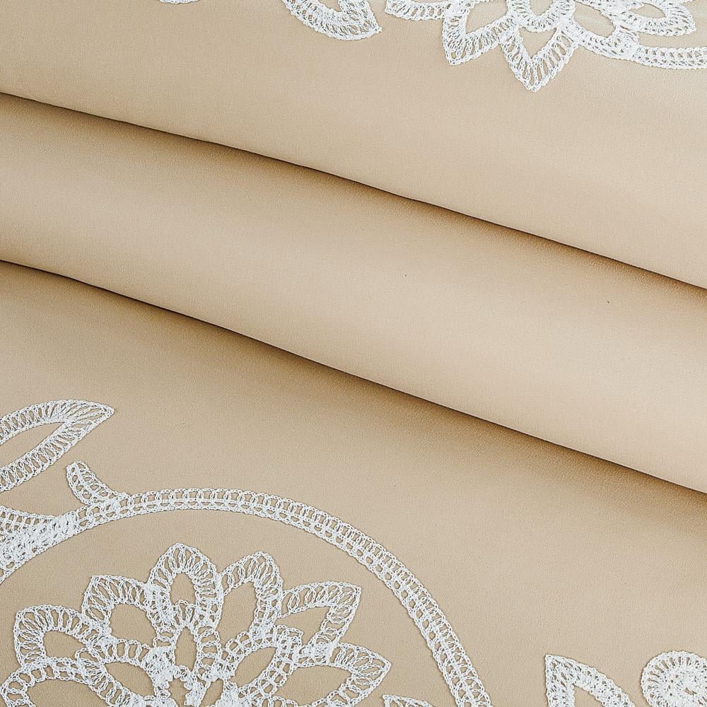 مفرش صيفي مزدوج مطرز فاخر 8 قطع - بيانكا - بيج