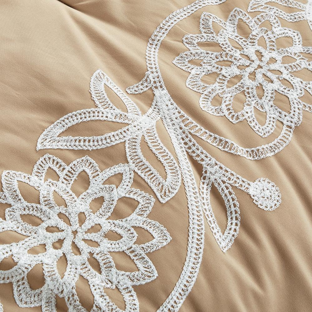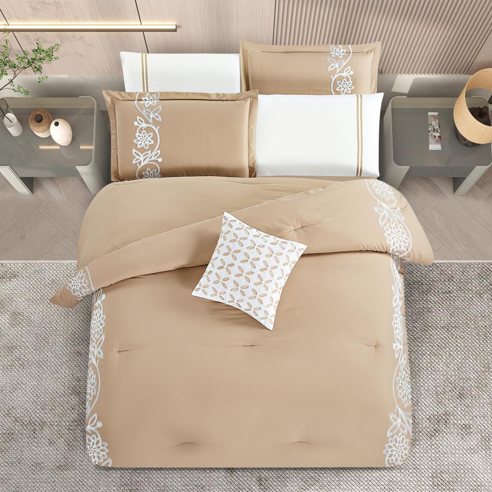 مفرش صيفي مزدوج مطرز فاخر 8 قطع - بيانكا - بيج غامق