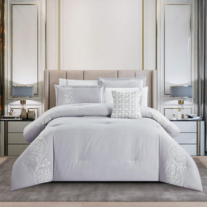 مفرش صيفي مزدوج مطرز فاخر 8 قطع - بيانكا - رصاصي