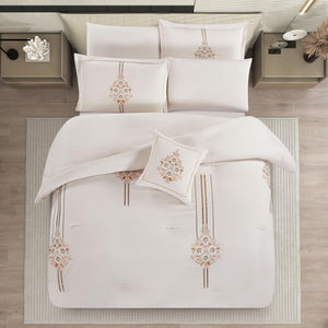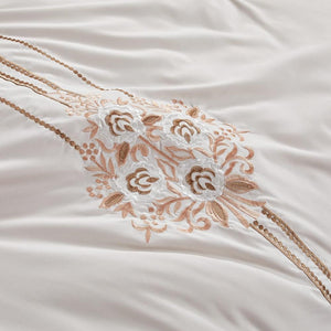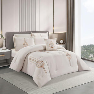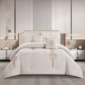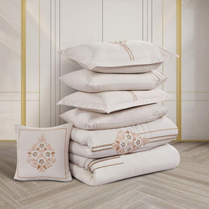 مفرش صيفي مزدوج مطرز فاخر 8 قطع - هيستيا - بيج فاتح