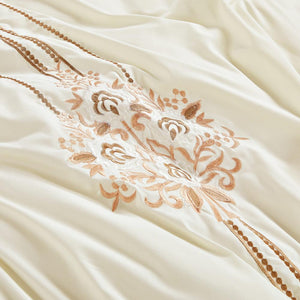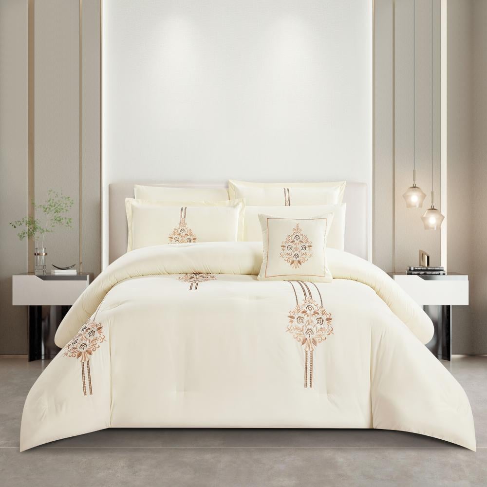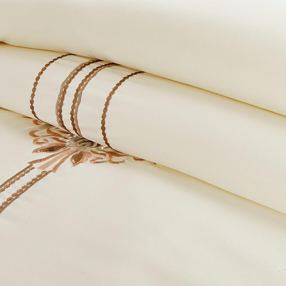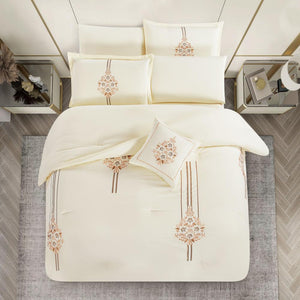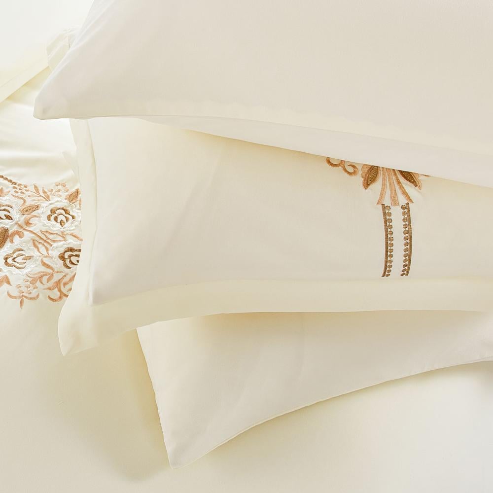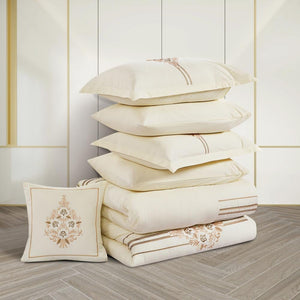 مفرش صيفي مزدوج مطرز فاخر 8 قطع - هيستيا - كريمي