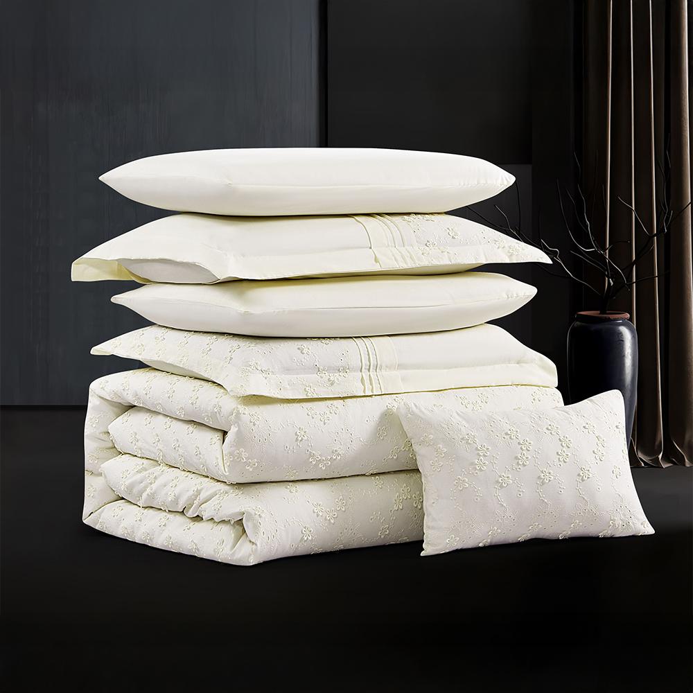 مفرش صيفي مزدوج مطرز ومزين بالدانتيل – 7 قطع – إيسولدي