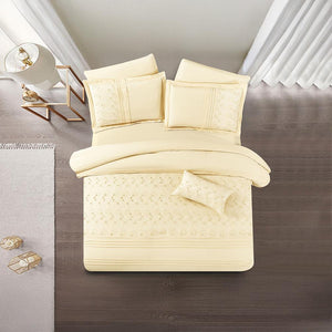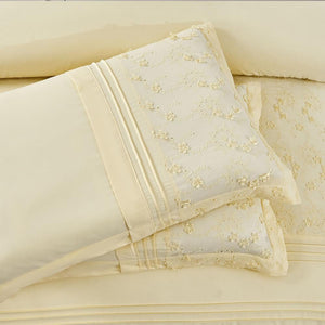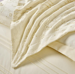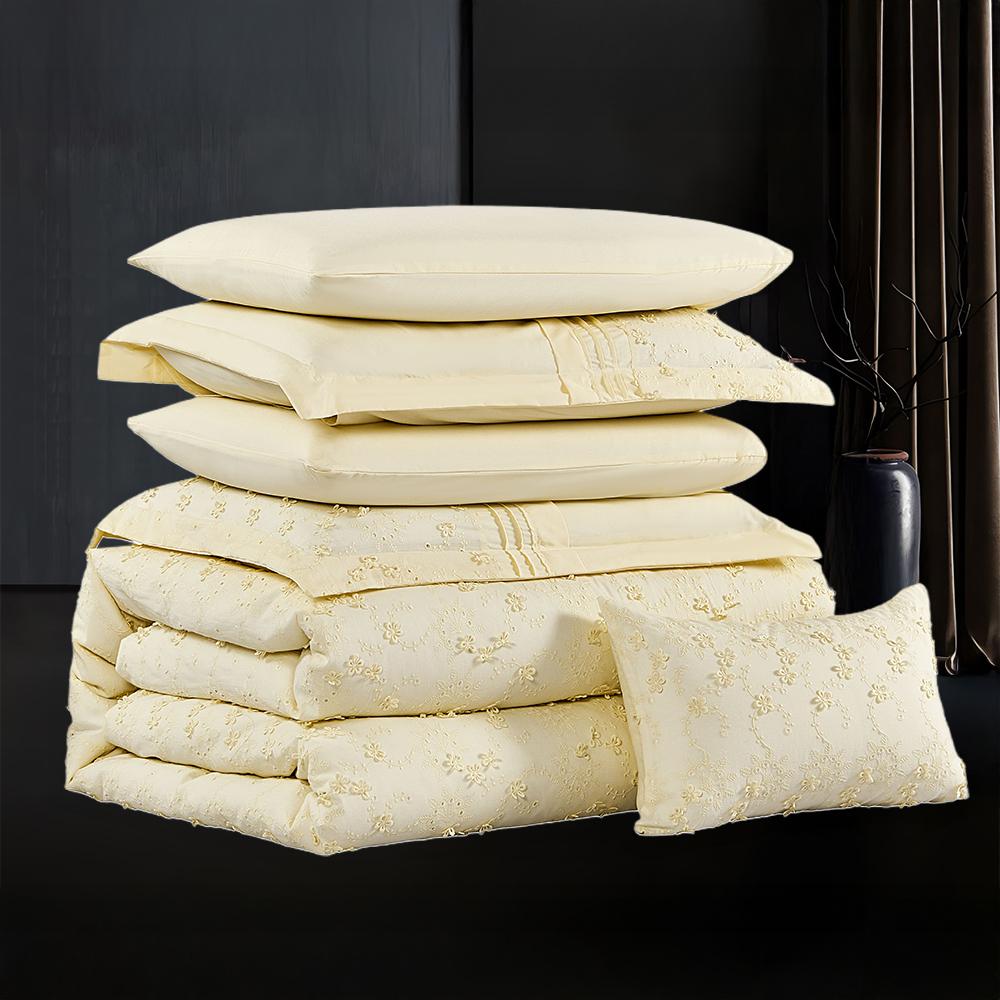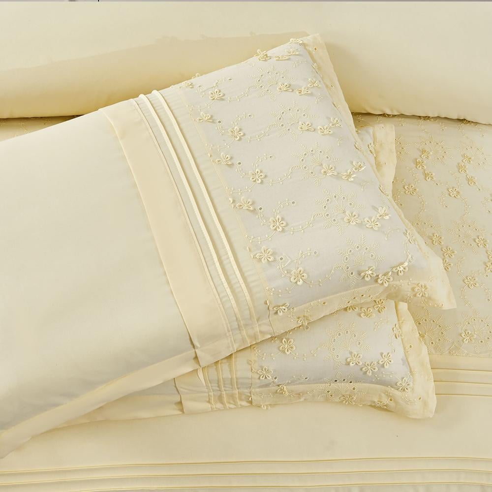 مفرش صيفي مزدوج مطرز مزين بالدانتيل 7 قطع - ايسولدي - كريمي