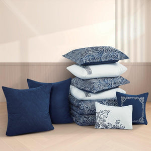 مفرش صيفي فاخر مفرد ونص جاكار مطرز 6 قطع – أمارثا – Amartha – كحلي
