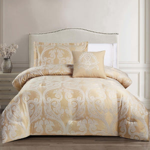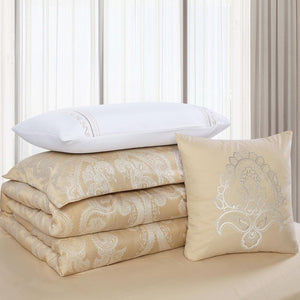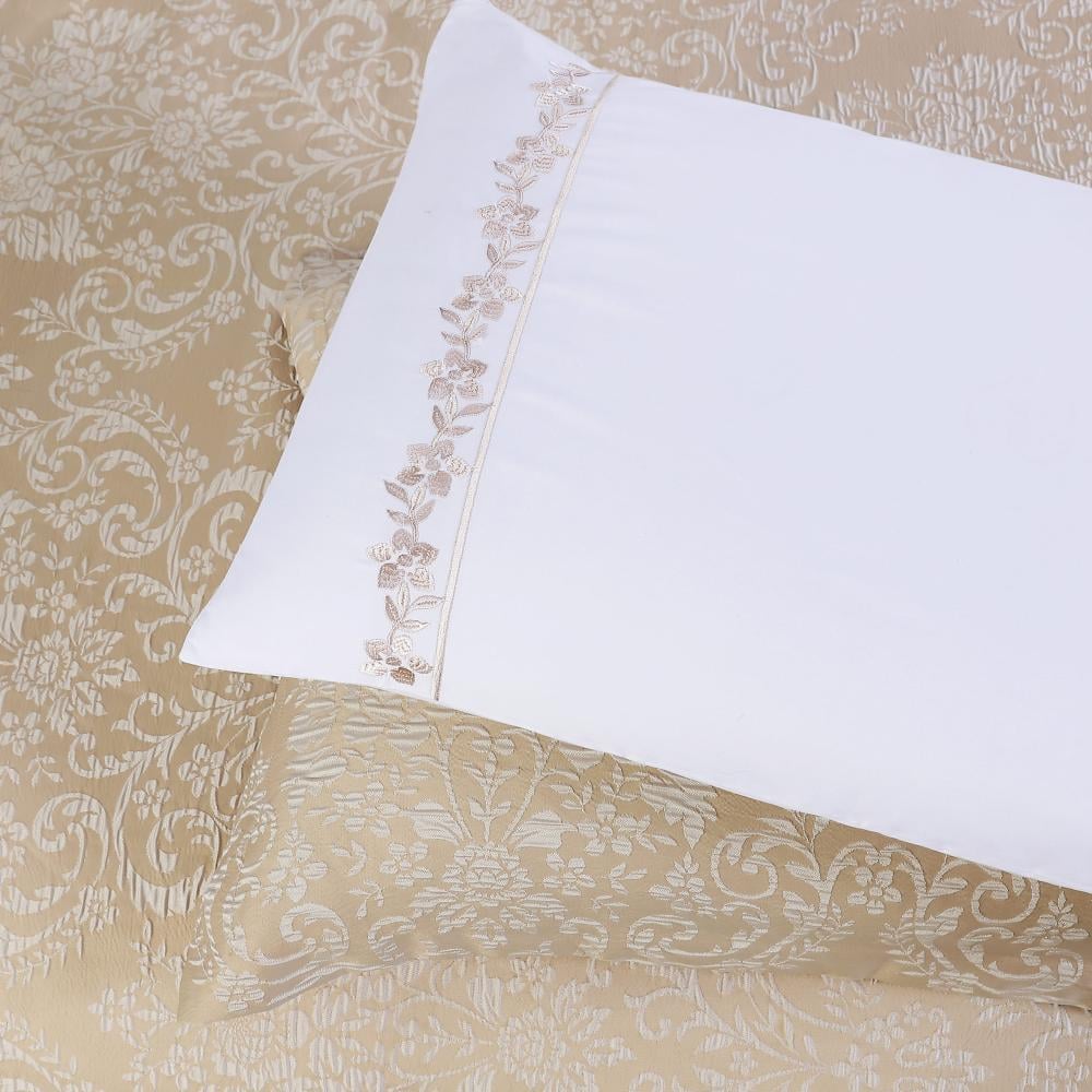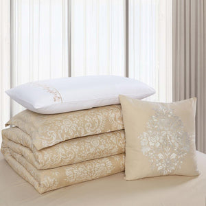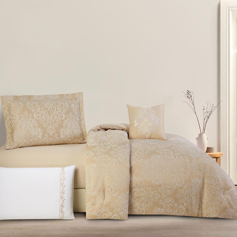 مفرش صيفي فاخر مفرد ونص جاكار مطرز 6 قطع – دانييلا - بيج
