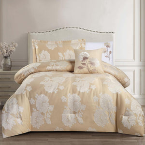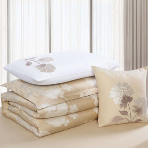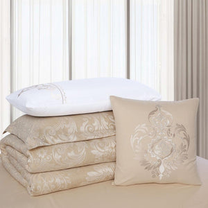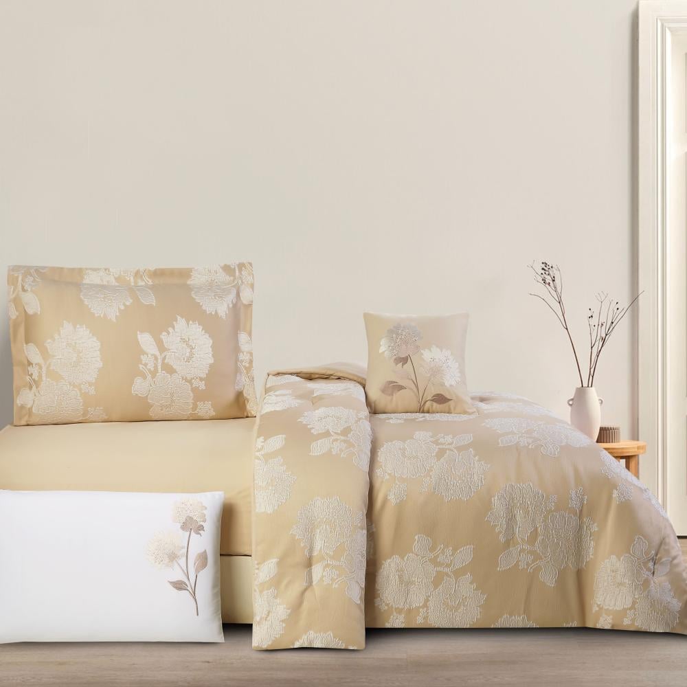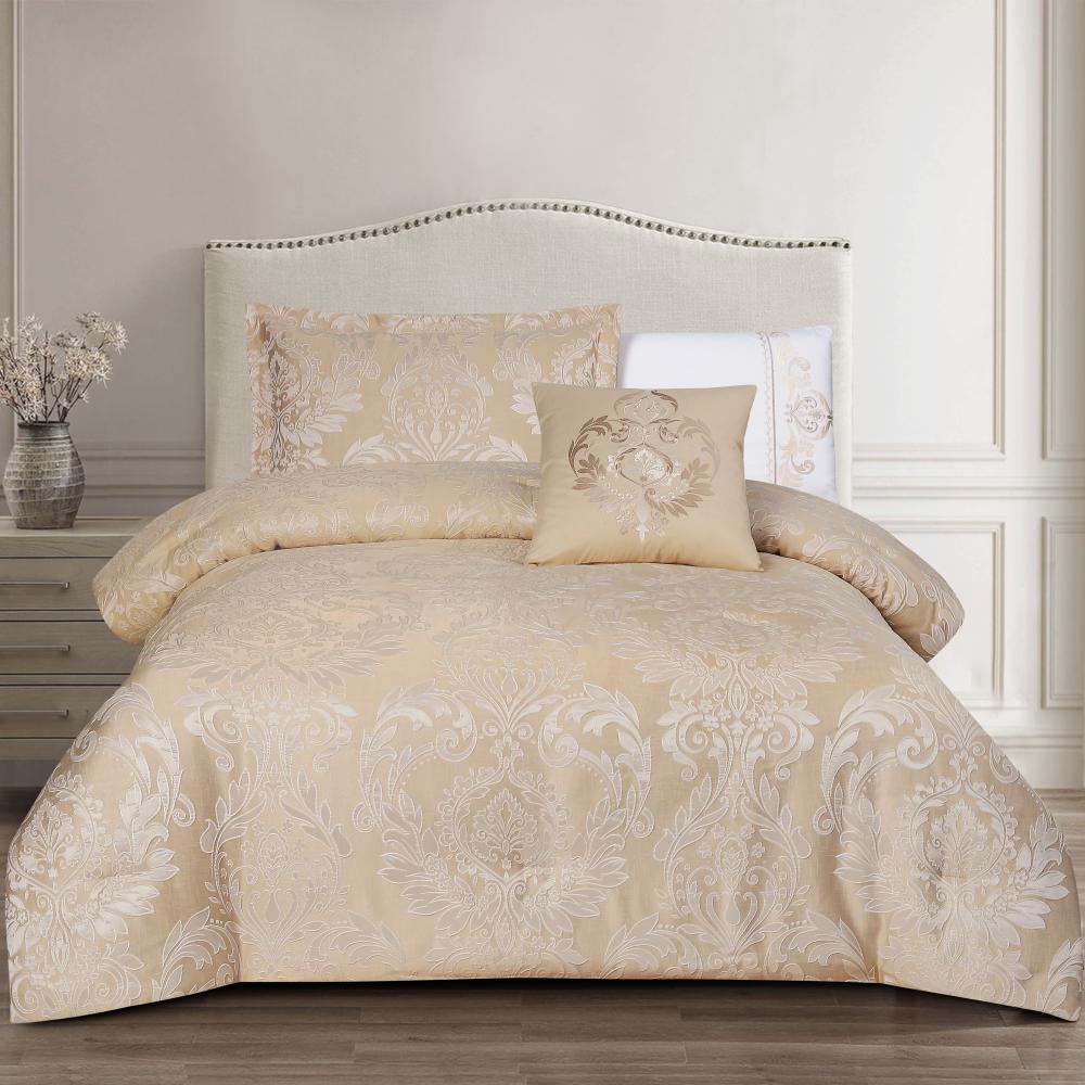 مفرش صيفي فاخر مفرد ونص جاكار مطرز 6 قطع – دانييلا - بيج فاتح