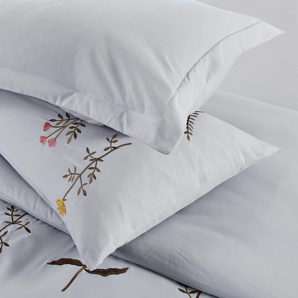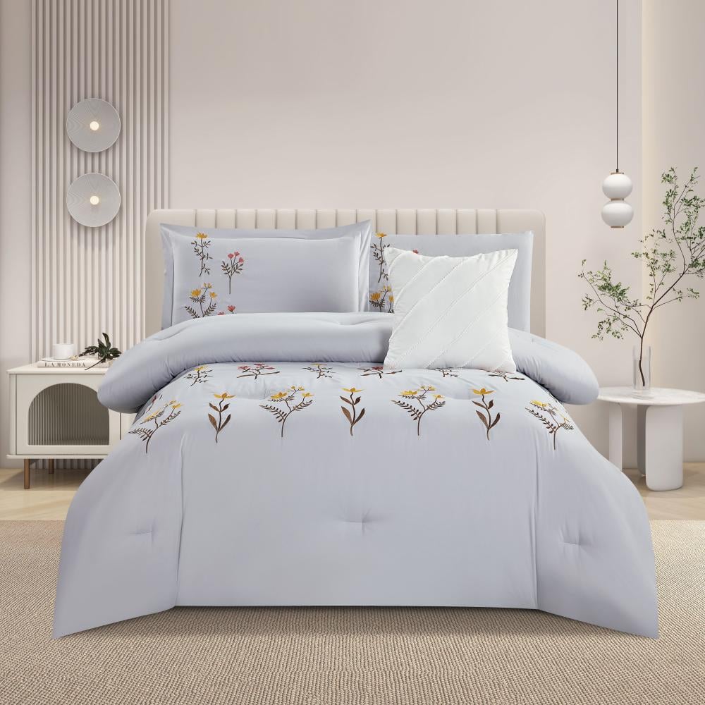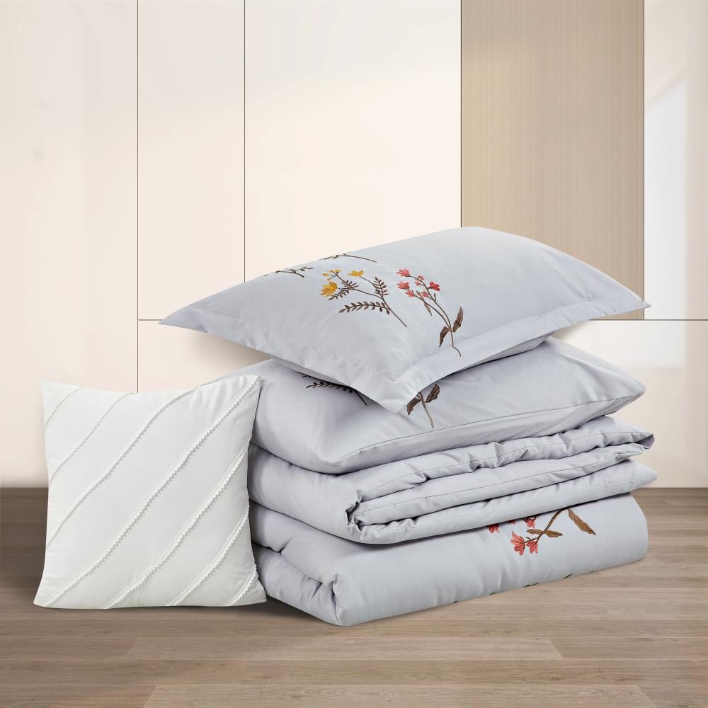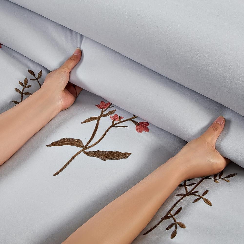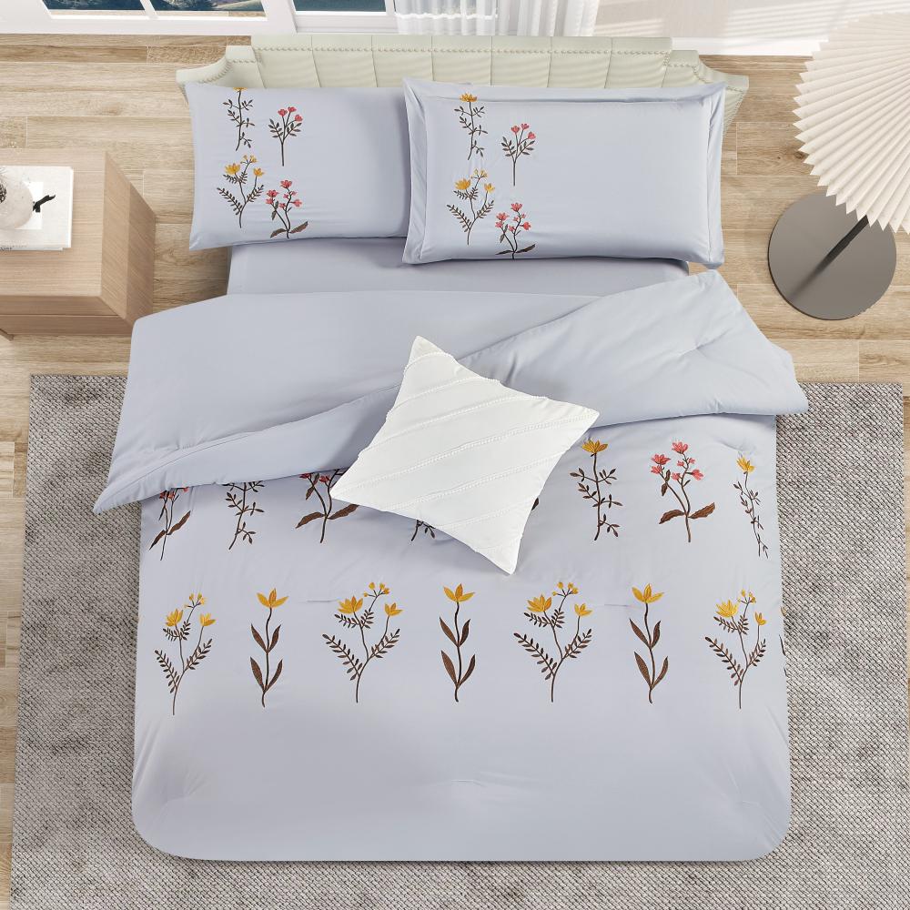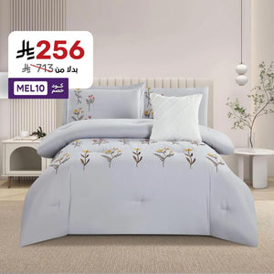مفرش صيفي مفرد ونص مطرز فاخر 6 قطع - غراتسيا - رصاصي
