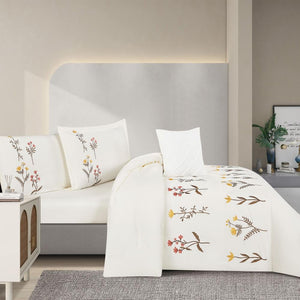 مفرش صيفي مفرد ونص مطرز فاخر 6 قطع - غراتسيا - سكري