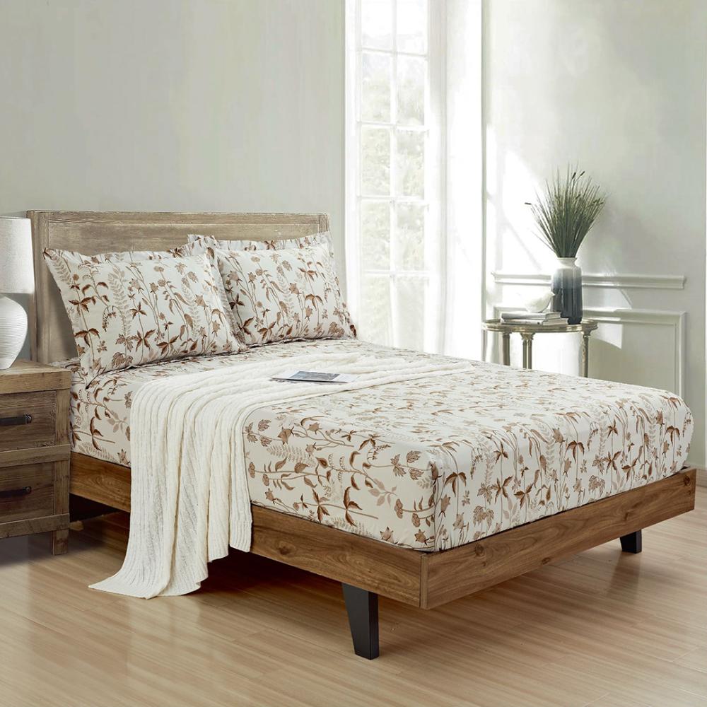 طقم شرشف مشجر مفرد ونص مغاط - 2 قطعة - بيج فاتح