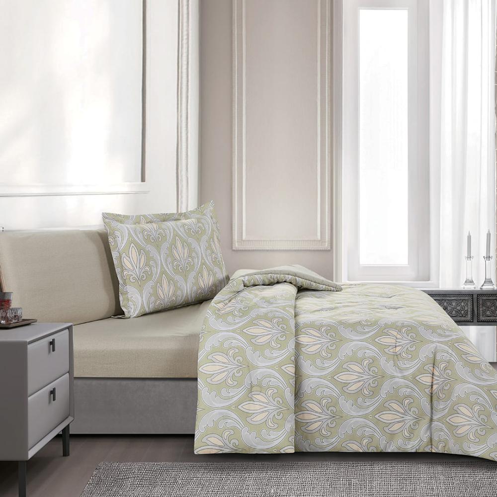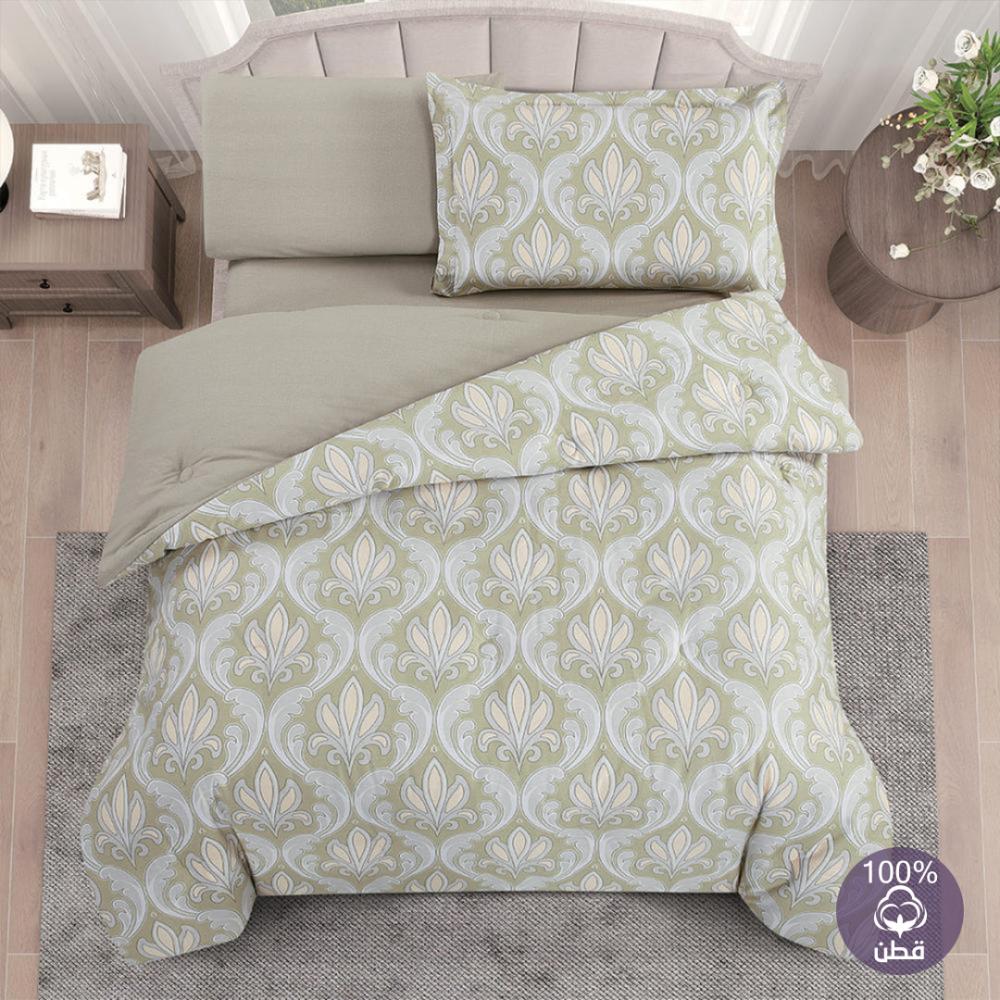 مفرش قطن صيفي مفرد ونص 4 قطع - فاليريا - اخضر - بيج غامق