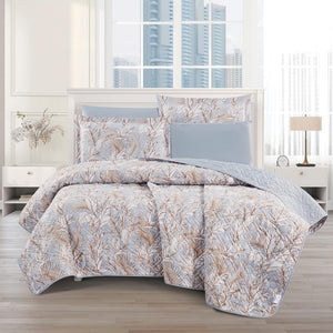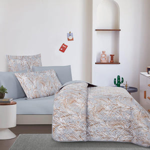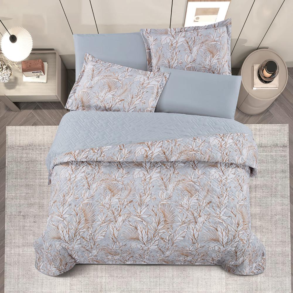 مفرش صيفي مزدوج حشوة مضغوطة 6 قطع - لونيا - رصاصي فاتح - رصاصي غامق