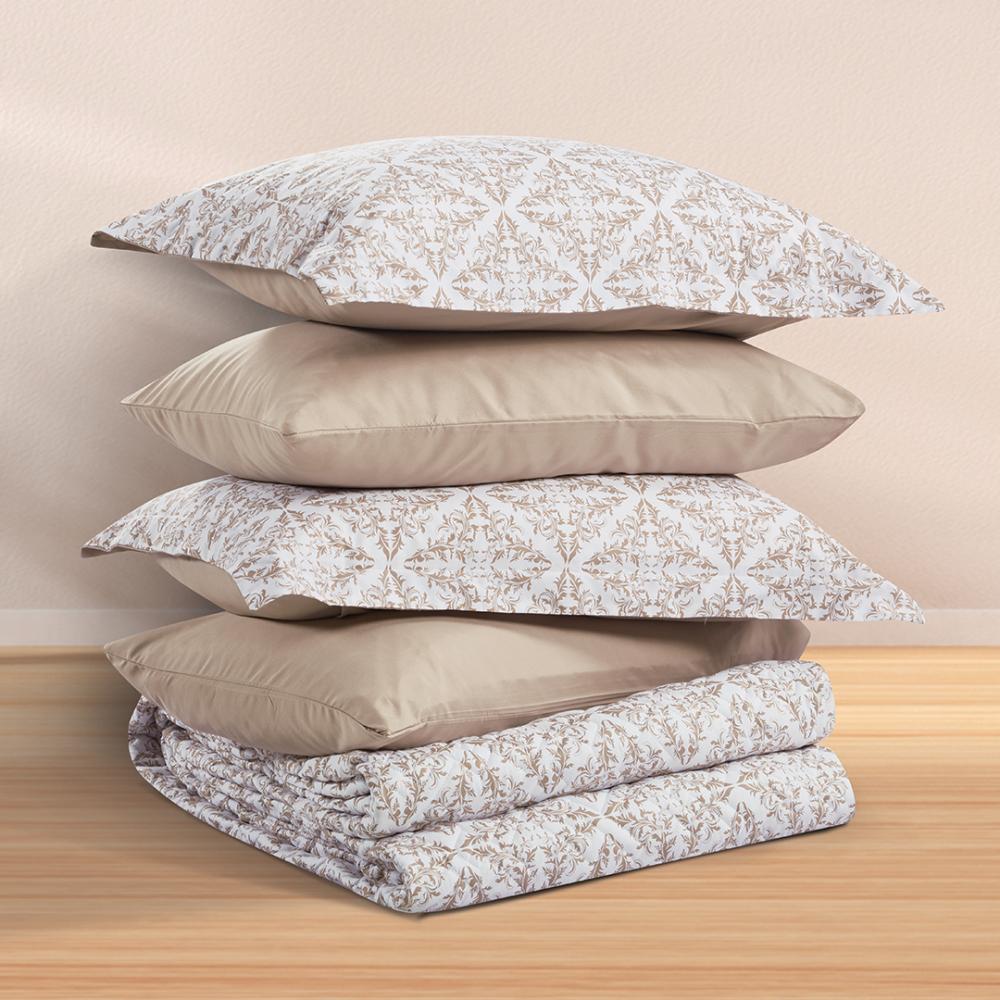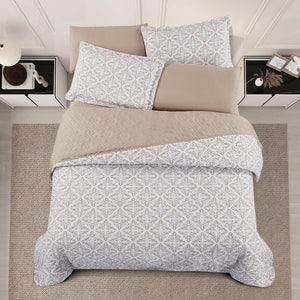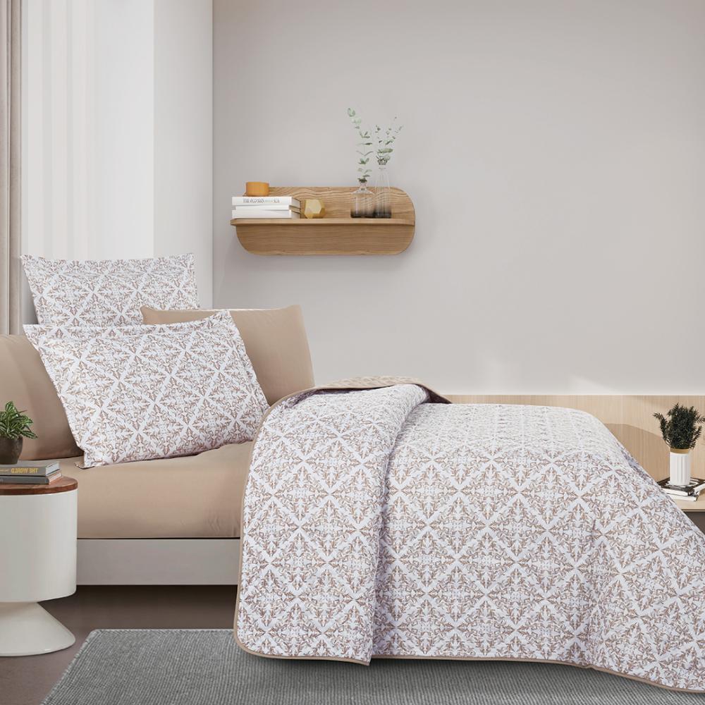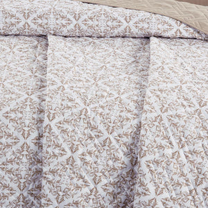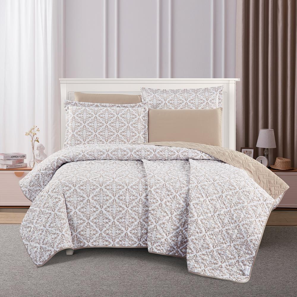 مفرش صيفي مزدوج حشوة مضغوطه 6 قطع - لونيا - ابيض - بيج غامق