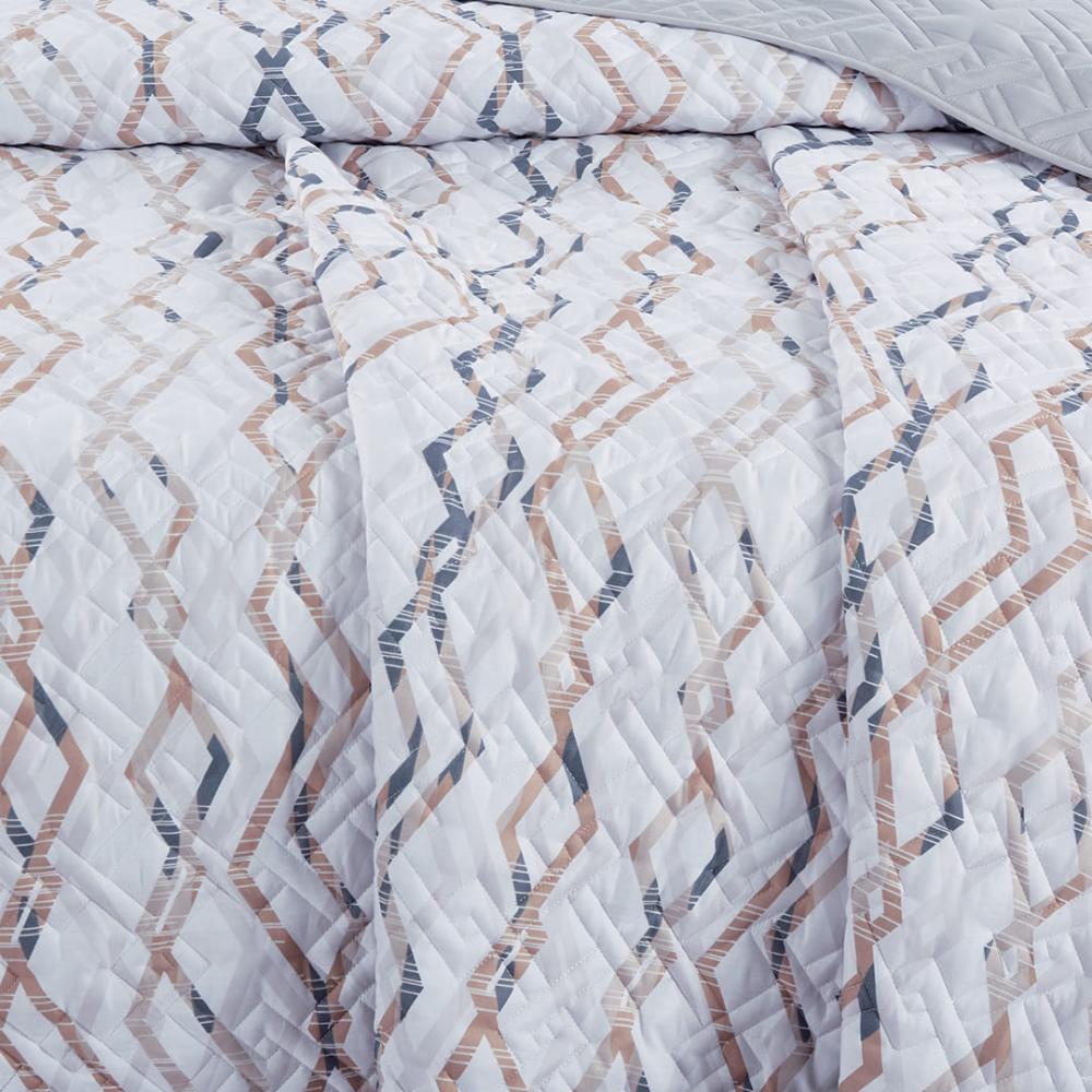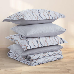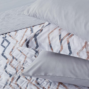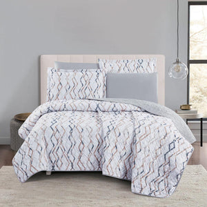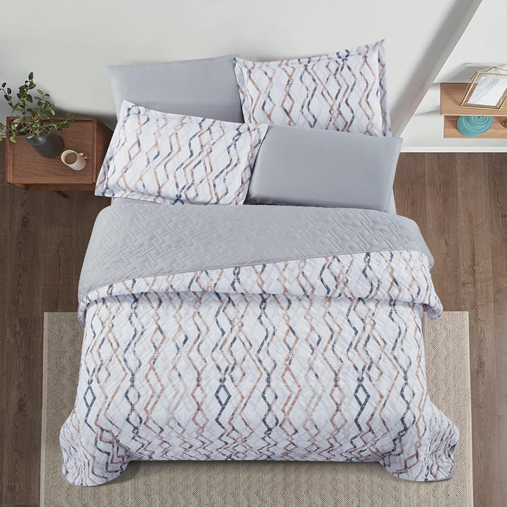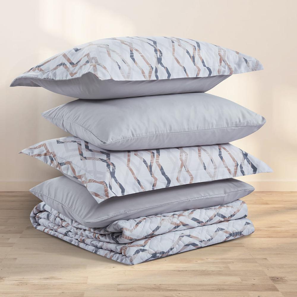 مفرش صيفي مزدوج حشوة مضغوطه 6 قطع - لونيا - ابيض - رصاصي