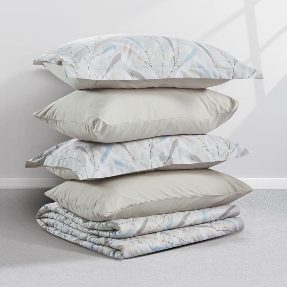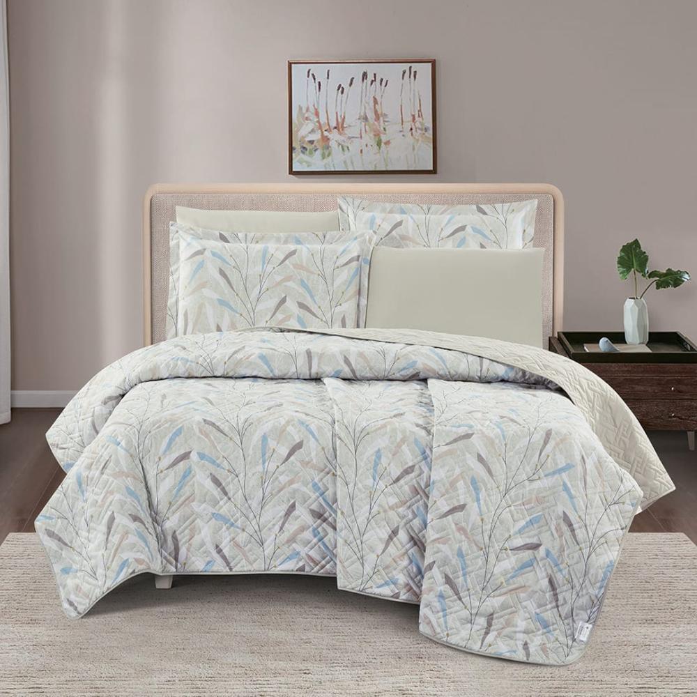مفرش صيفي مزدوج حشوة مضغوطة 6 قطع - لونيا | نعومة مطلقة وأناقة بسيطة , مناسب للضيوف و الرحلات