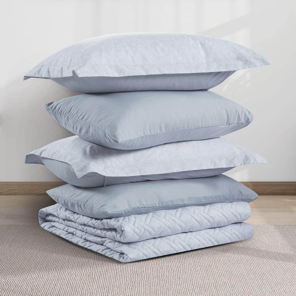 مفرش صيفي مزدوج حشوة مضغوطه 6 قطع - لونيا - رصاصي - رمادي