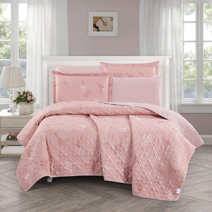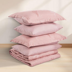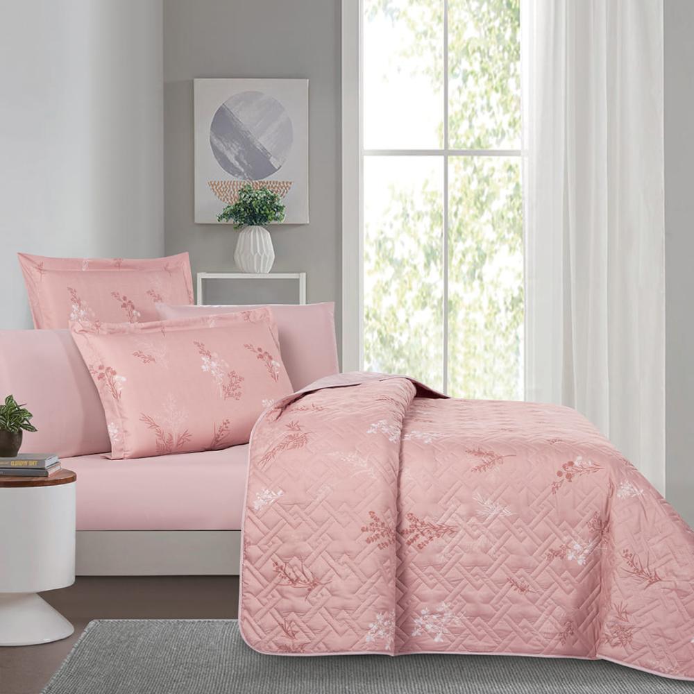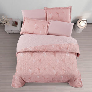 مفرش صيفي مزدوج حشوة مضغوطه 6 قطع - لونيا - زهري