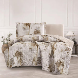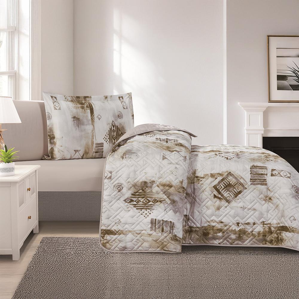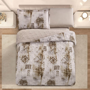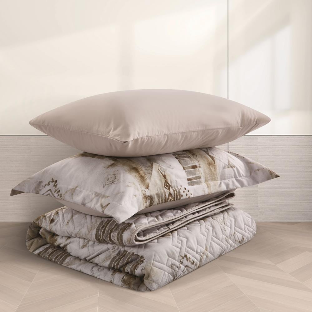 مفرش صيفي مفرد ونص حشوة مضغوطه 4 قطع - افروديت - ابيض عاجي - بيج