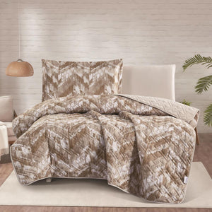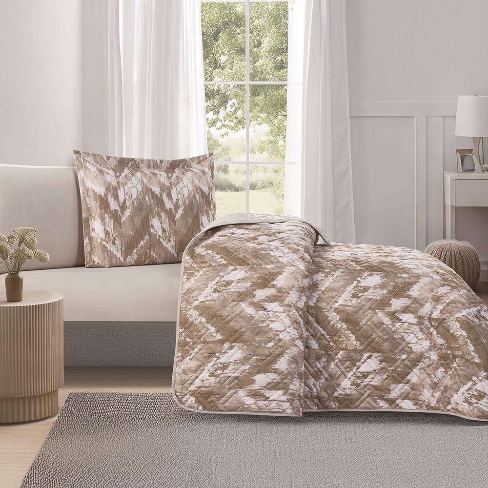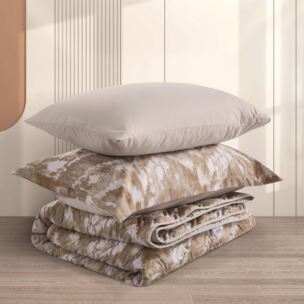 مفرش صيفي مفرد ونص حشوة مضغوطه 4 قطع - افروديت - بيج غامق - بيج فاتح