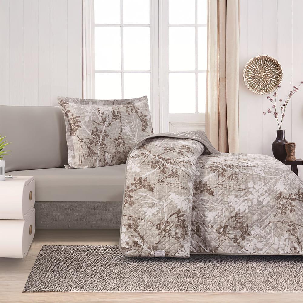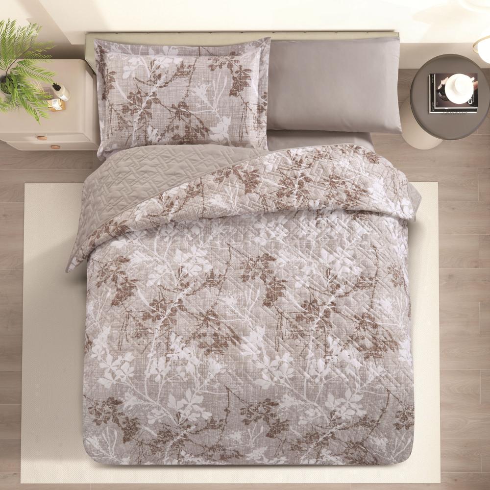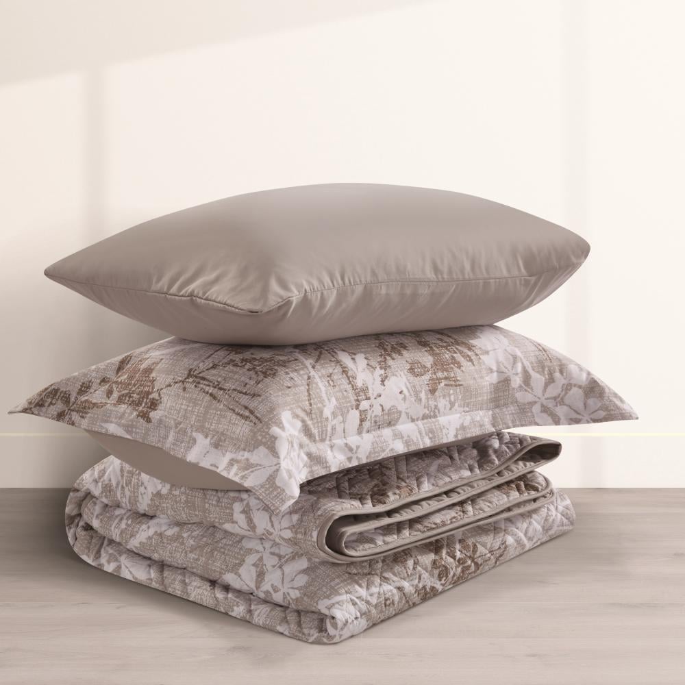 مفرش صيفي مفرد ونص حشوة مضغوطه 4 قطع - افروديت - بيج غامق - رمادي