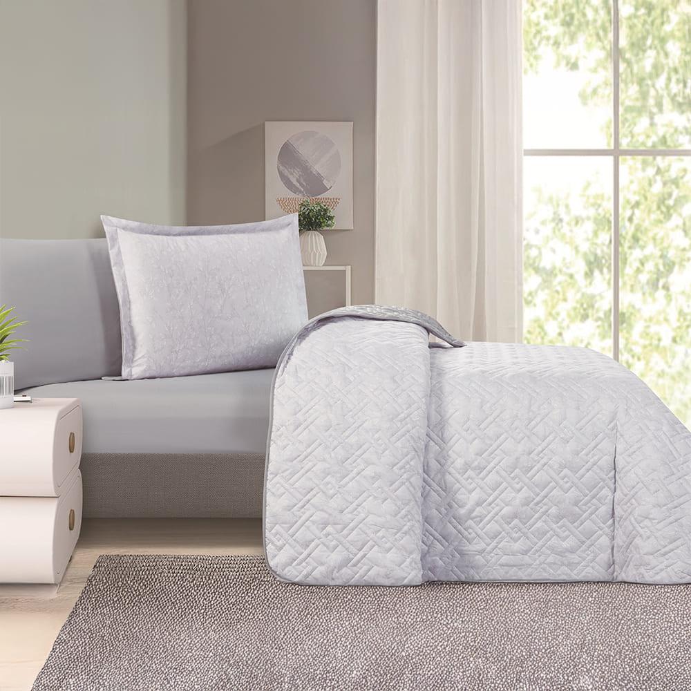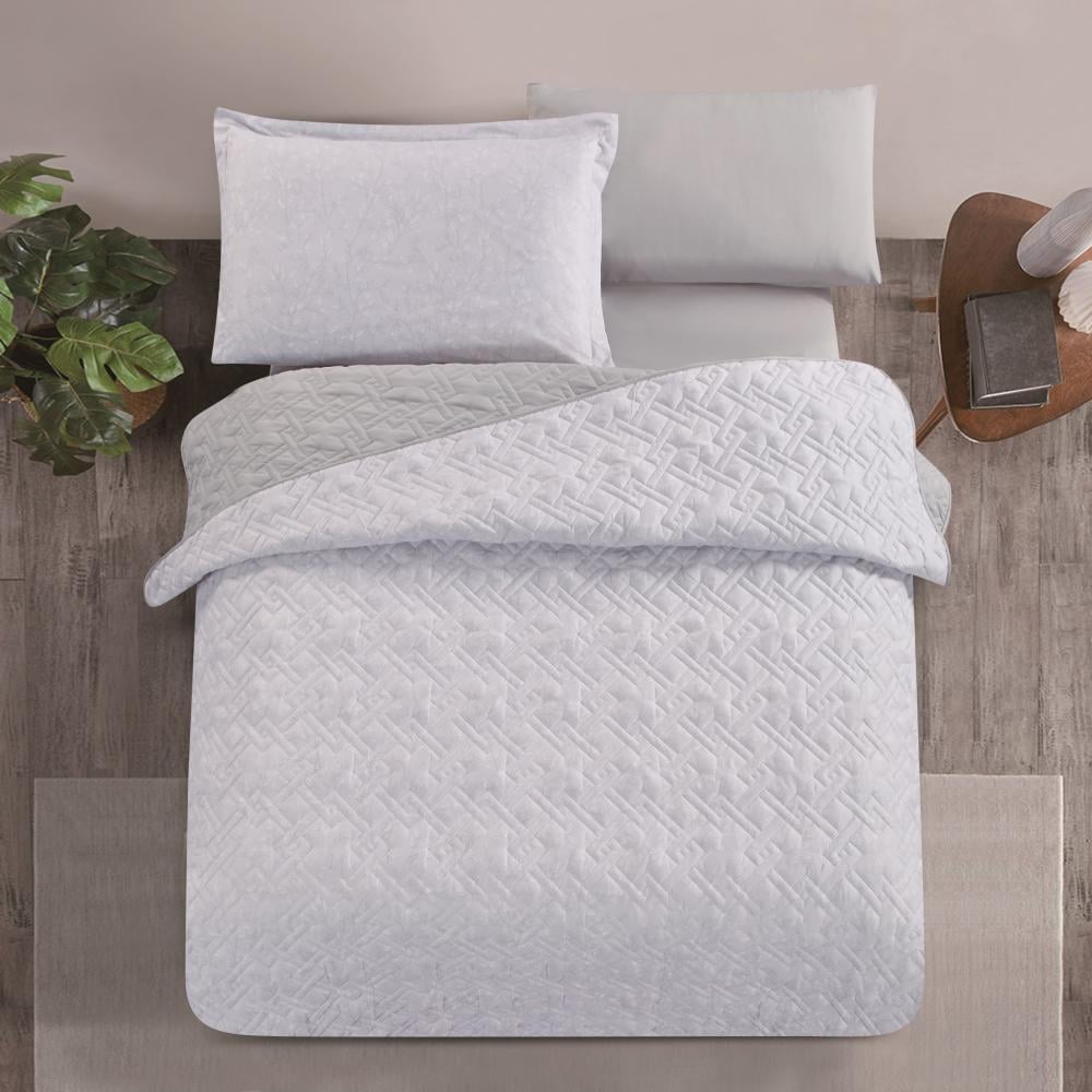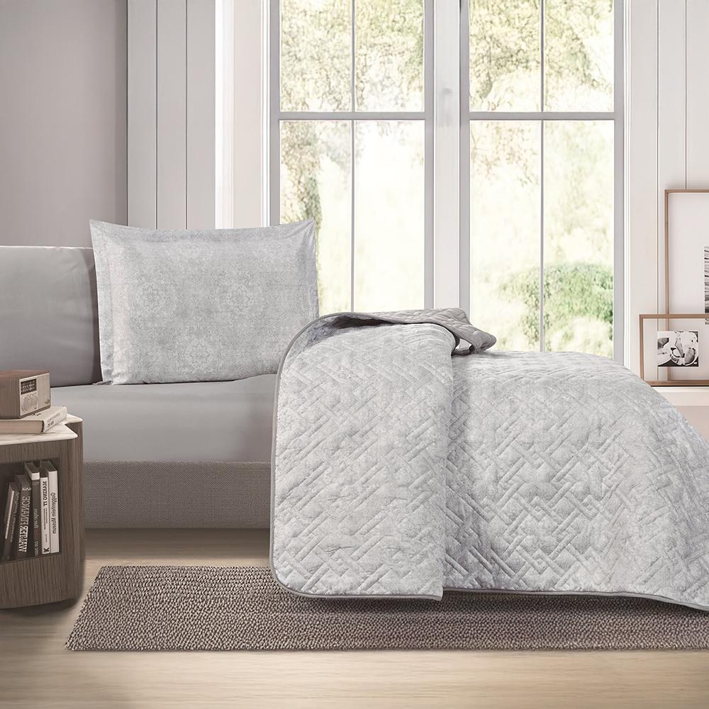 مفرش صيفي مفرد ونص حشوة مضغوطه 4 قطع - افروديت - رصاصي - رمادي