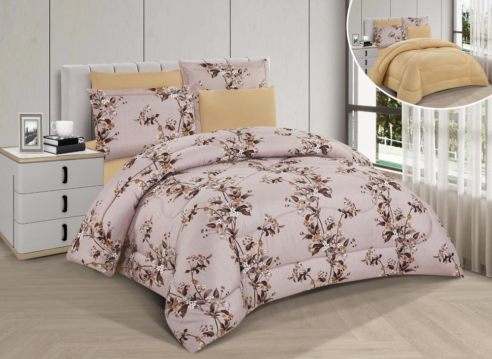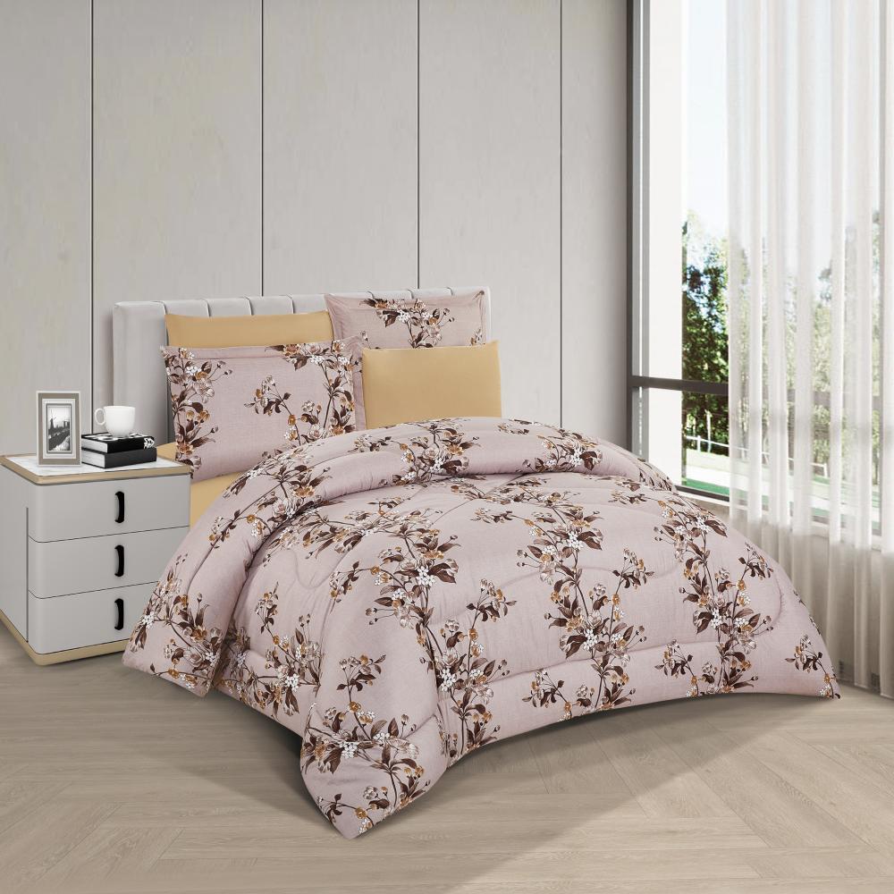 مفرش صيفي مفرد ونص 4 قطع - غاردينا -لحمي بيج - بيج غامق