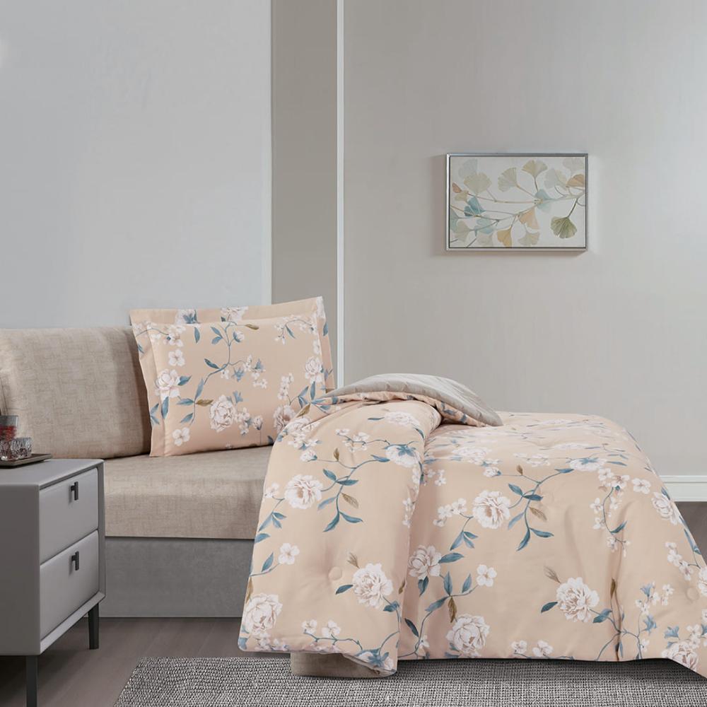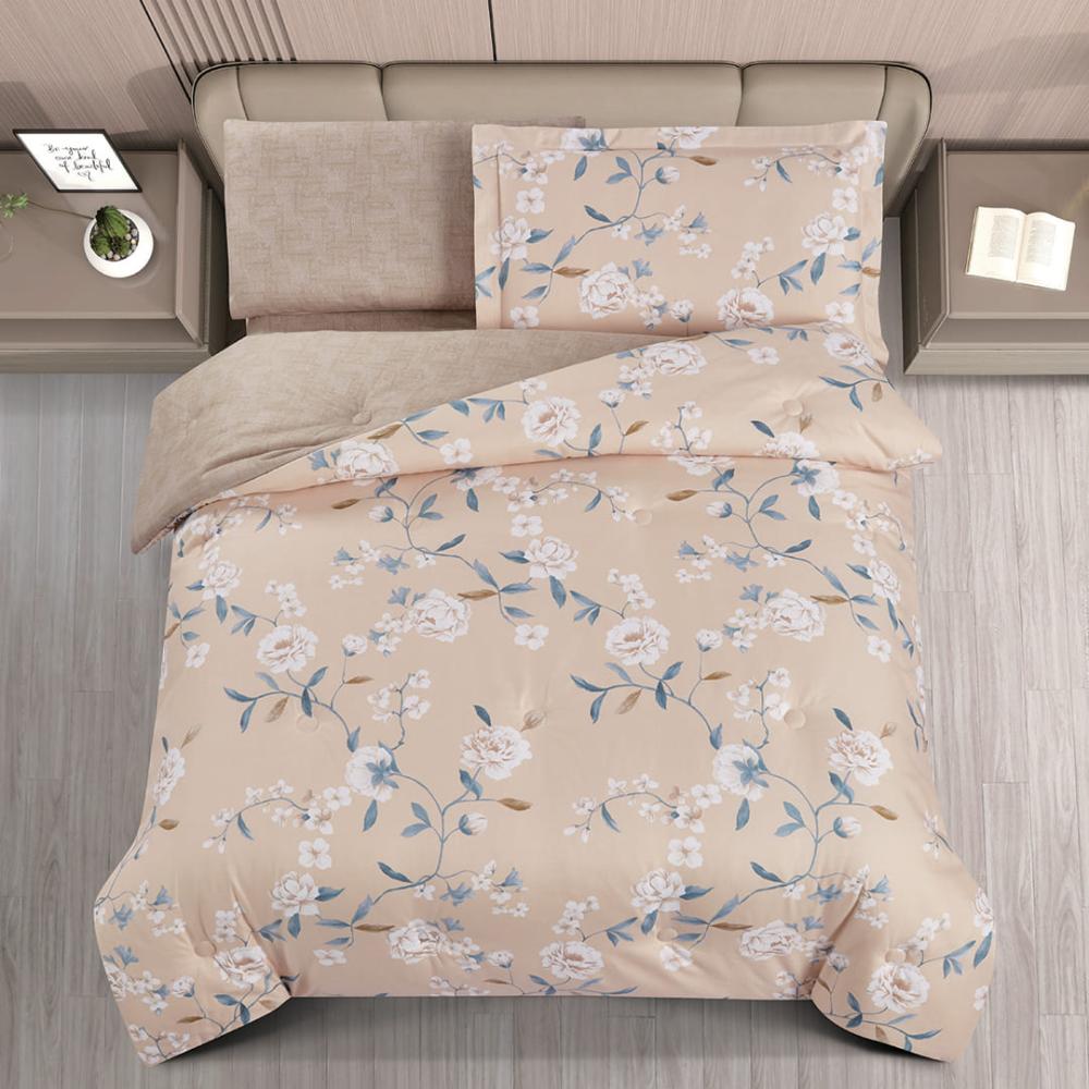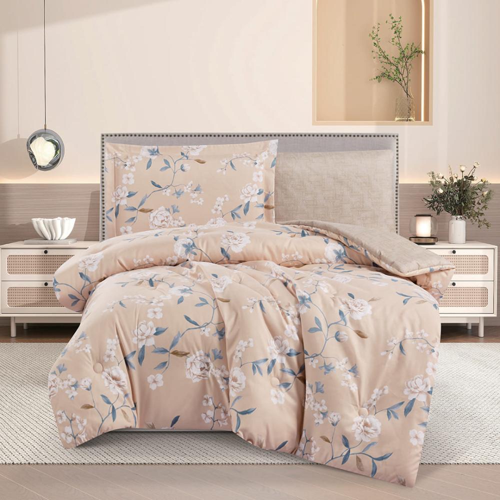 مفرش صيفي مفرد ونص 4 قطع - ليتون - بيج فاتح - بيج غامق