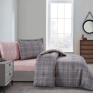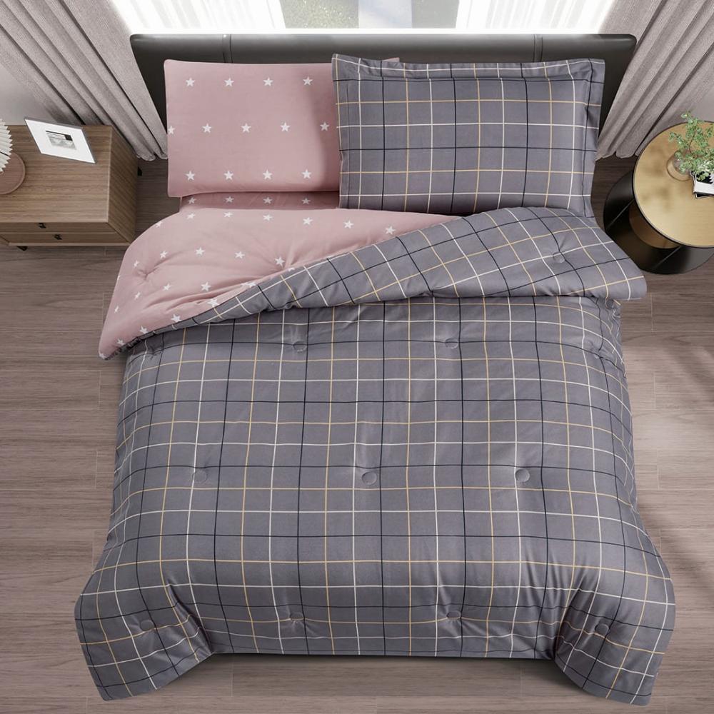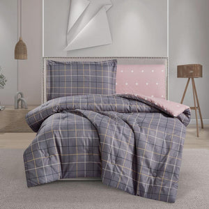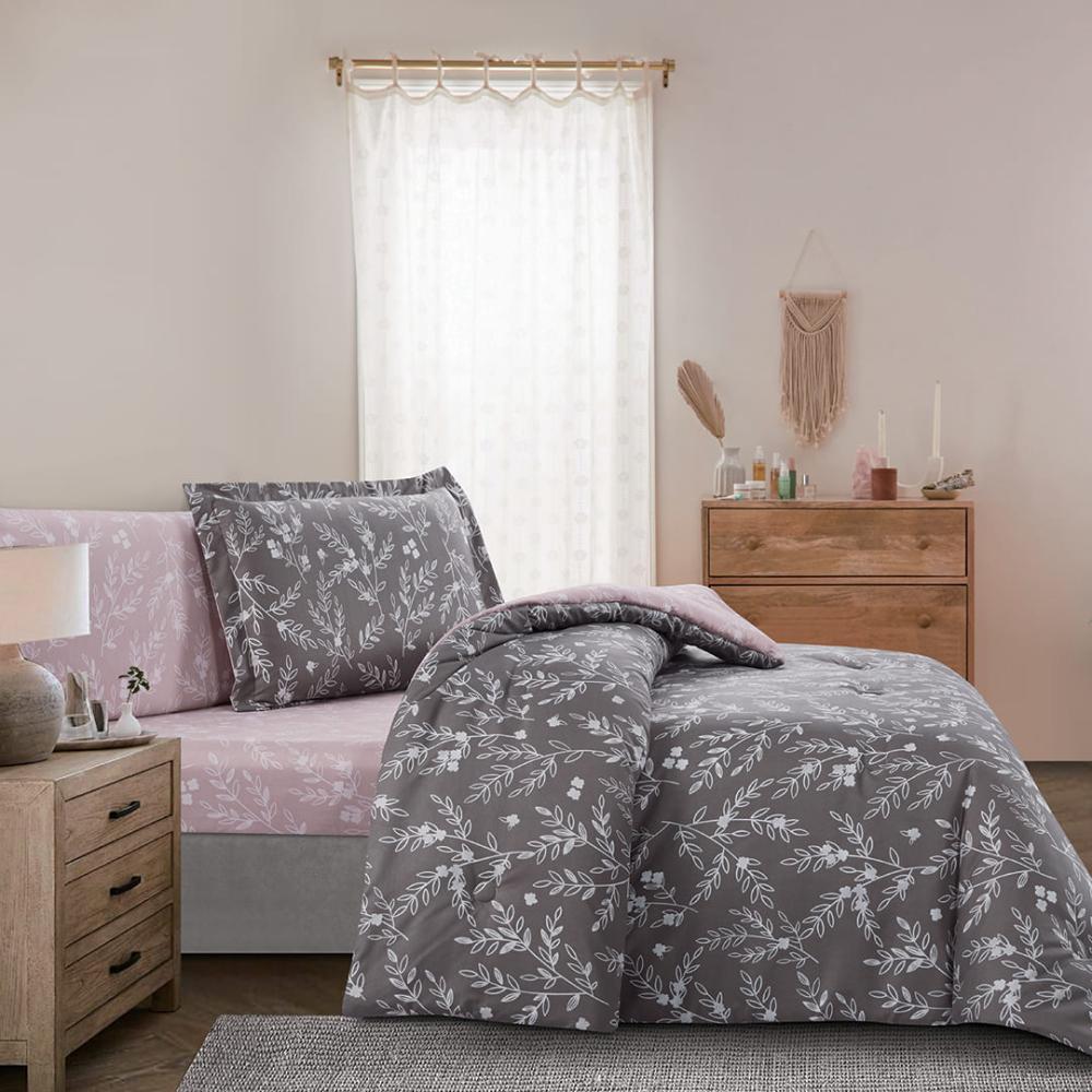 مفرش صيفي مفرد ونص 4 قطع - ليتون - رمادي غامق - لحمي
