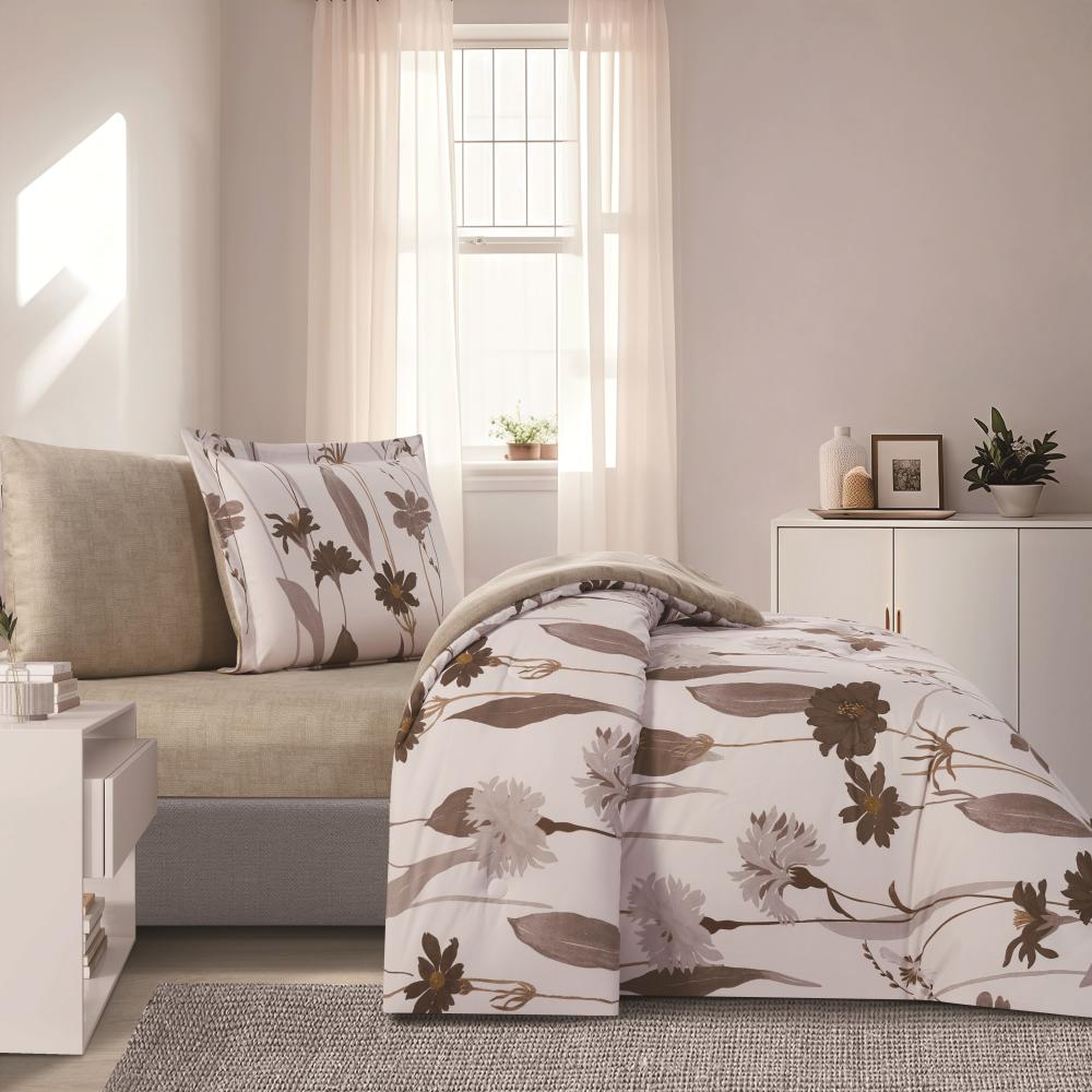 مفرش صيفي مفرد ونص 4 قطع - ليتون -سكري - بيج غامق