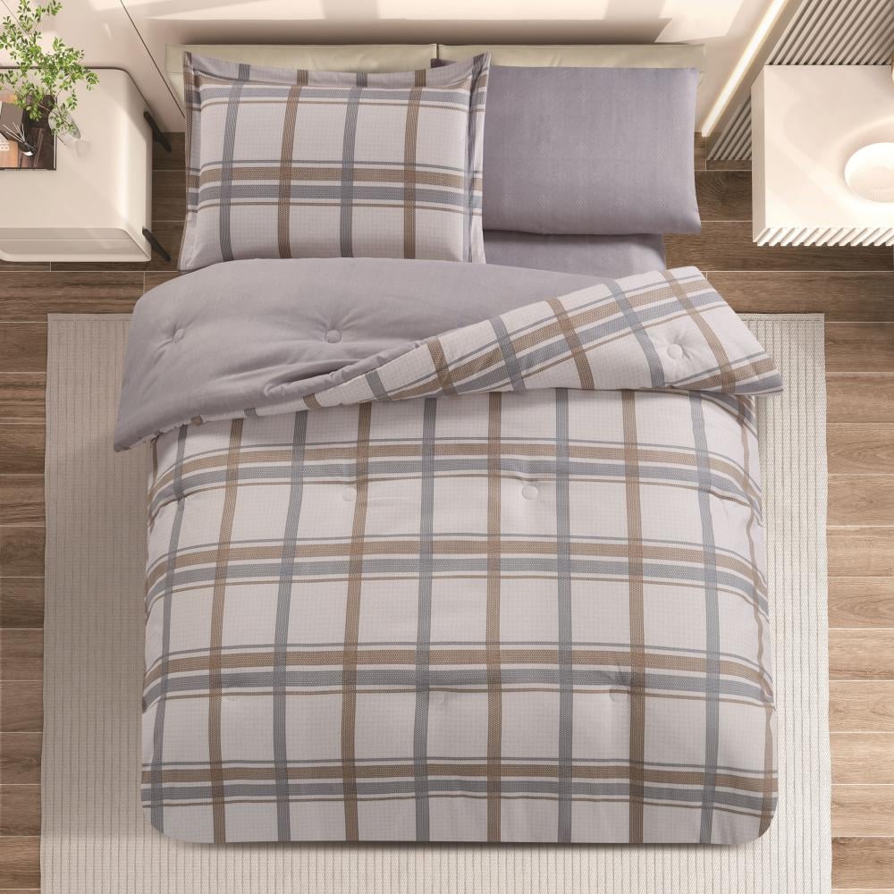 مفرش صيفي مفرد ونص 4 قطع - ليتون - كريمي - رصاصي