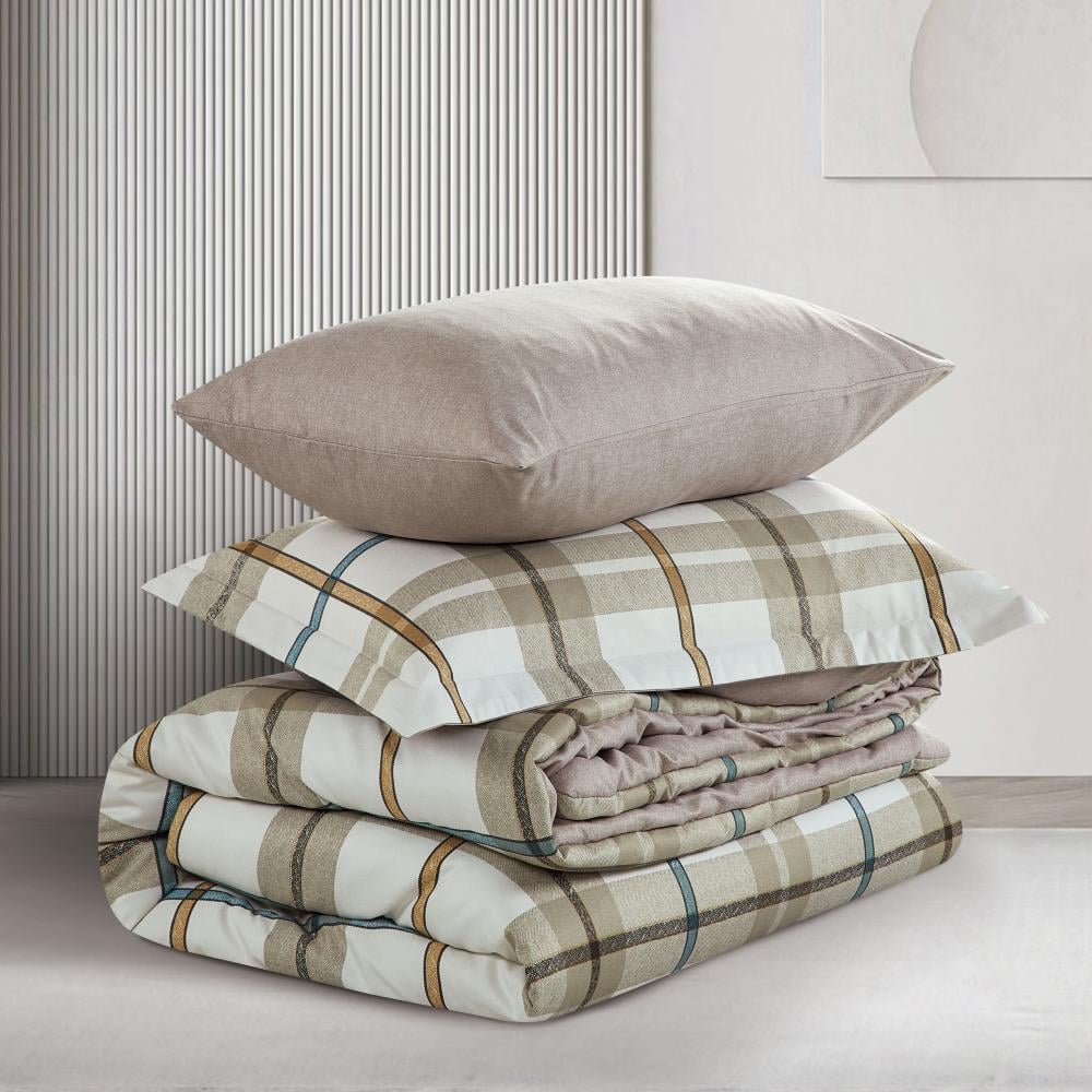 مفرش صيفي مفرد ونص 4 قطع - ليتون -كريمي - رمادي