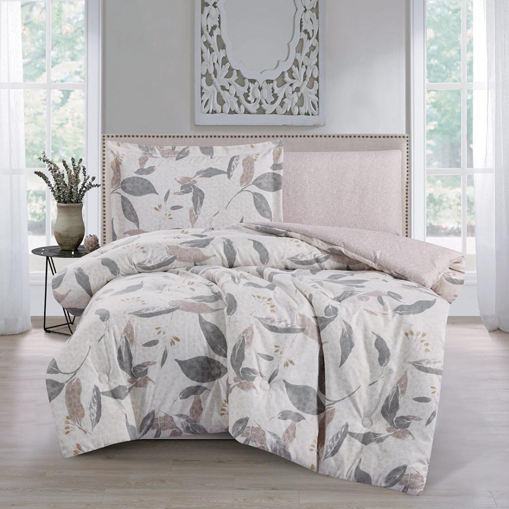 مفرش صيفي مفرد ونص 4 قطع - ليتون - كريمي - رمادي فاتح