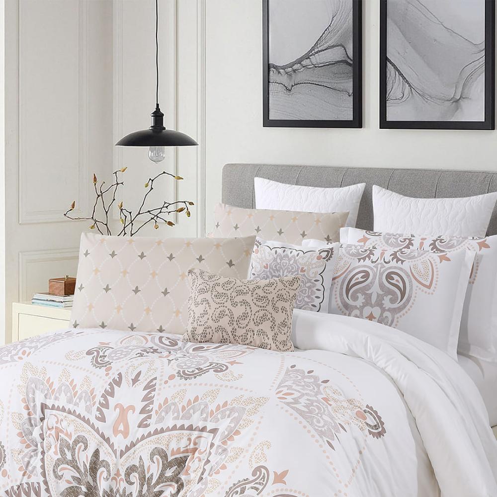 مفرش ريفيرا المميز بقماش مختار بعناية من ميلين يجمع بين النعومة و المتانة في آن واحد بحشوة ناعمة اختيرت بعناية يأتي مفرش ريفيرا بمجموعة مميزة من ١٠ قطع .