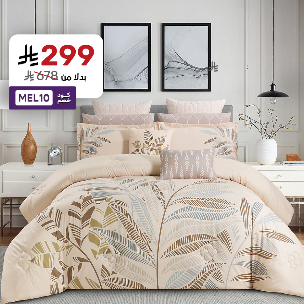 مفرش ريفيرا المميز بقماش مختار بعناية من ميلين يجمع بين النعومة و المتانة في آن واحد بحشوة ناعمة اختيرت بعناية يأتي مفرش ريفيرا بمجموعة مميزة من ١٠ قطع .الخامة: مايكروفايبر معالج بأحدث التقنيات العالمية ليعطيك نعومة تفوق نعومة القطن .المقاس...